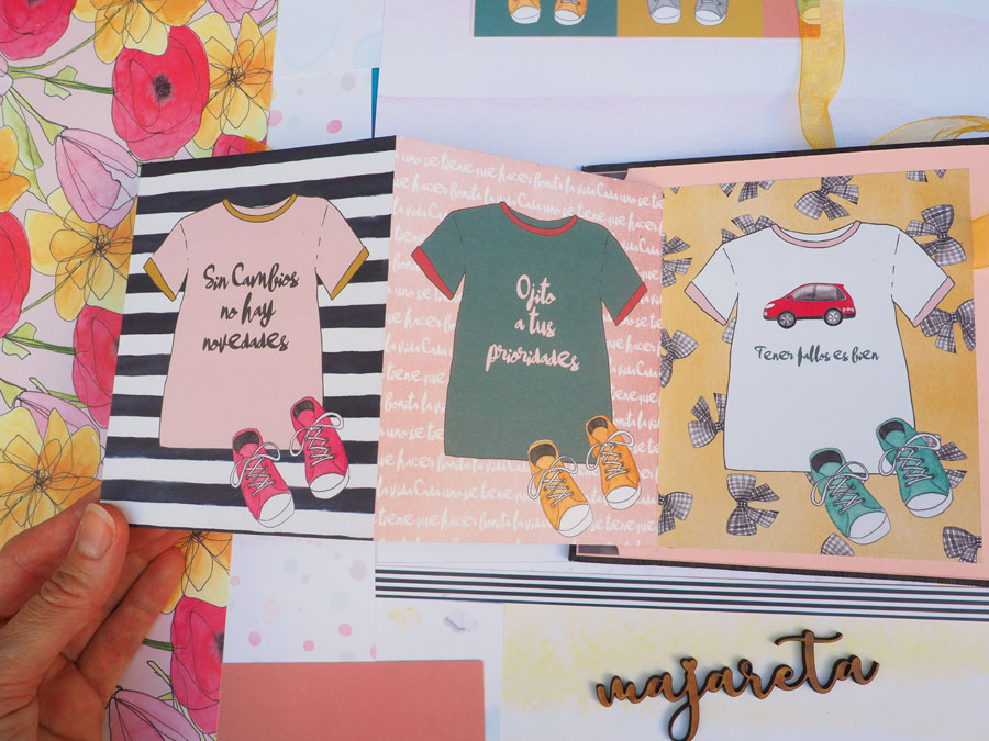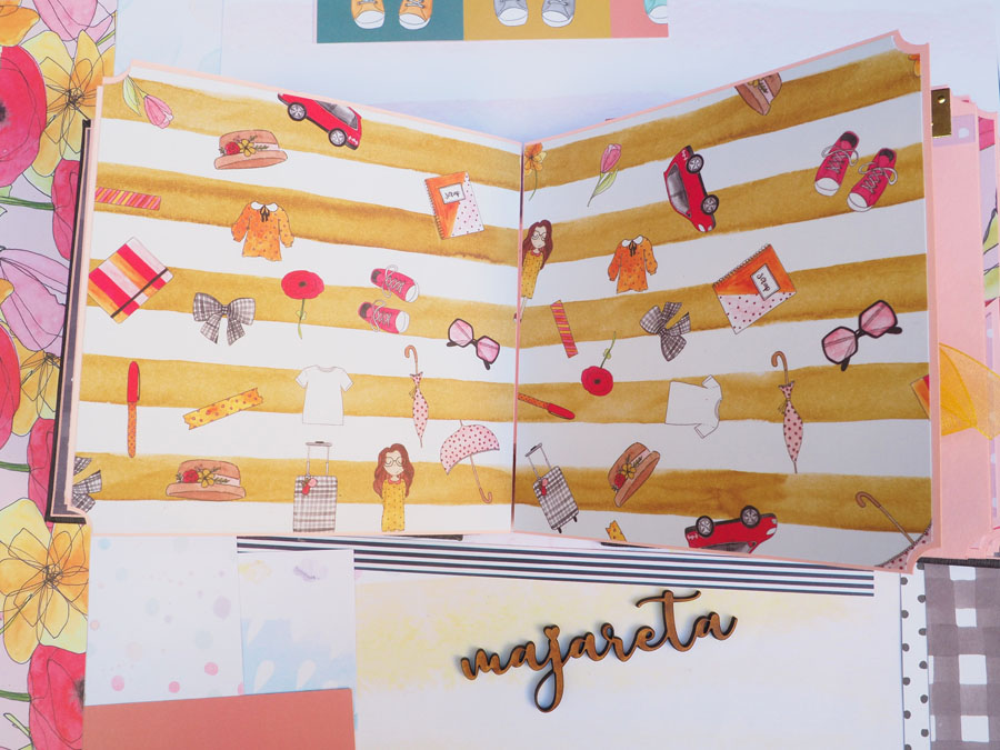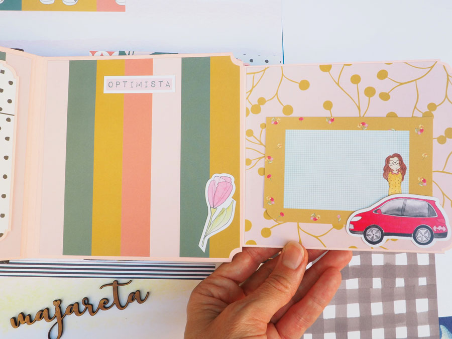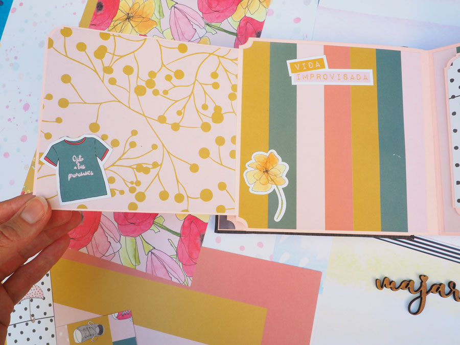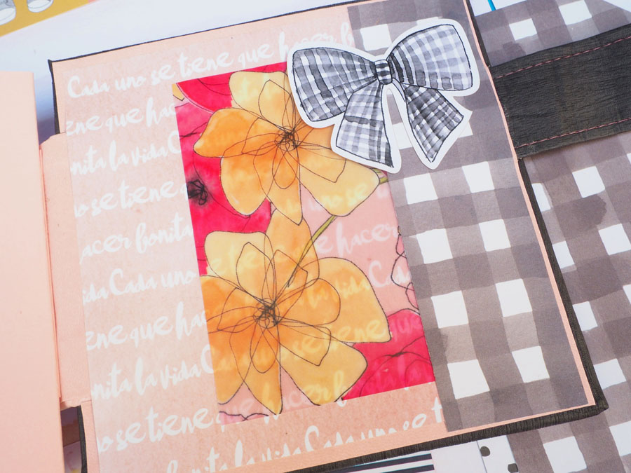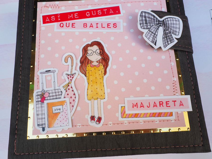 Para hacer el álbum he usado la colección Piccolina Brava, los diecuts y el velum de flores. Cartulina de alta calidad de SdnArt para hacer los minilibritos interiores que simulan una encuadernacion espina, cartulina dorada, y ecopiel madera negro y rosa crepe de Kora Projects para forrar el lomo. Es la primera vez que utilizo ecopiel y me requetechifla el resultado! 🙂 El lomo lo he dejado mitad visto mitad tapado y y por dentro está lleno de bolsillos, una cascada y desplegables con cierres de imán y lazos … El cierre también es la primera vez que lo uso, un cierre de imán como los de los monederos, y creo que no será la última vez que lo utilice… A ver si os gusta!