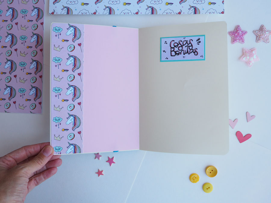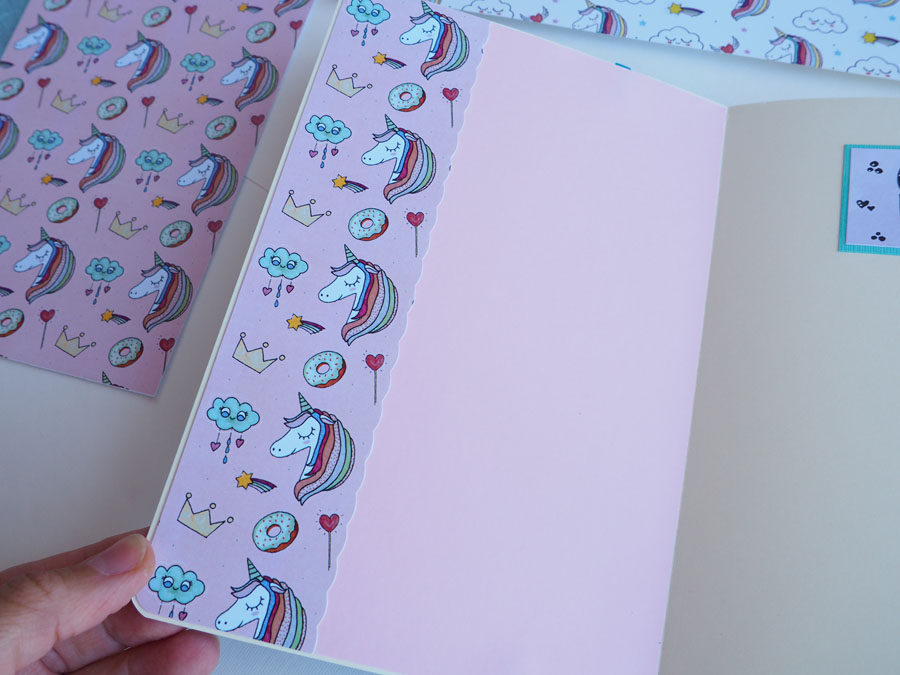 Ya veis que la libreta es muy sencillita, hecha con los papeles de Laura Cyinder, con la que colaboro como DT. Además hace juego con el álbum de unicornios que os enseñaba el otro día (Si queréis verlo clicad aquí)… Eso es lo bueno de tener papeles digitales, puedes imprimirlos tantas veces como quieras!!