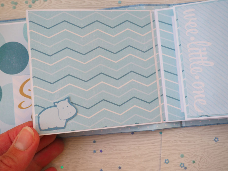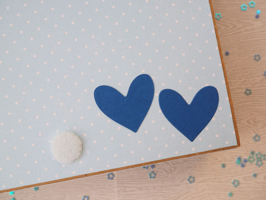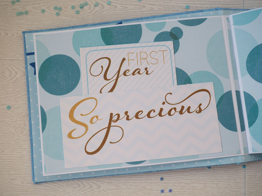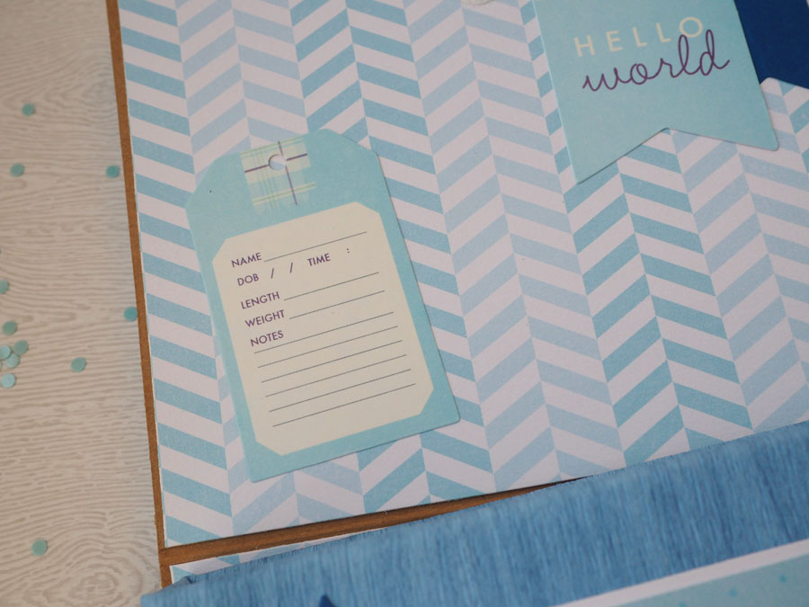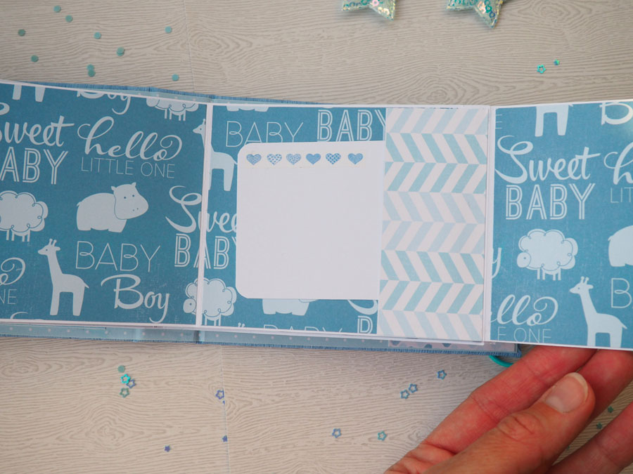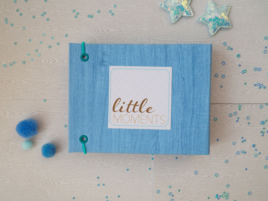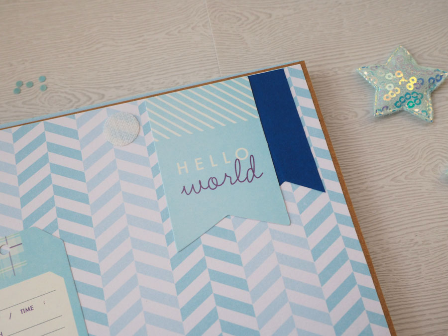 Para hacer tanto el álbum como la caja he usado la colección My baby de American Crafts, y para forrar la estructura del mini he utilizado ecopiel azul, que le da un acabado perfecto 🙂