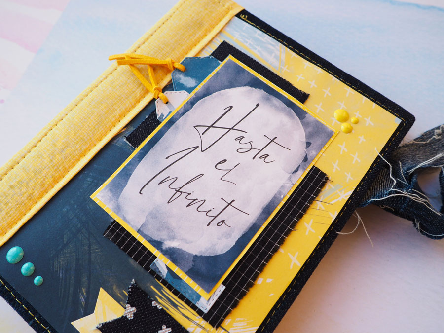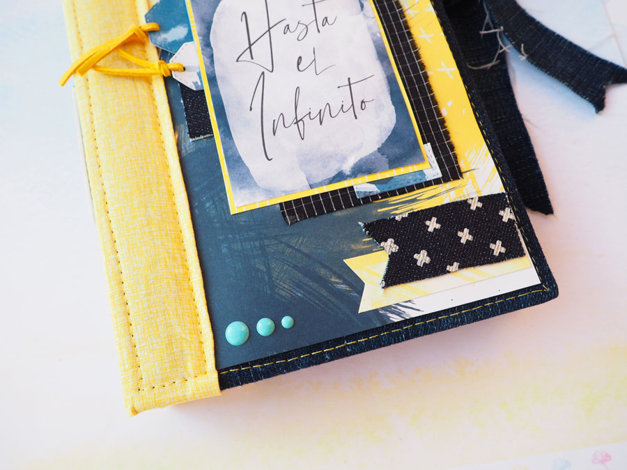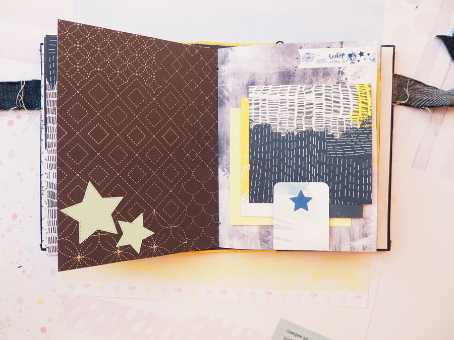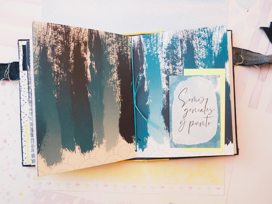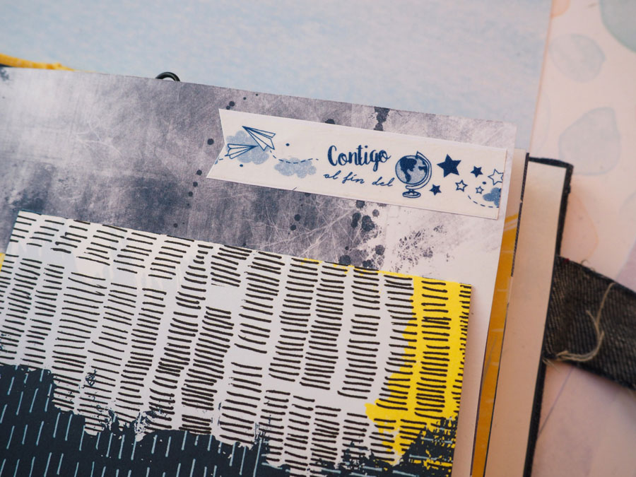 En esta ocasión es un álbum de chico hecho con la colección Boro de Paperinky, combinada con tonos amarillos y azules. Es una colección que me requetechifla, porque yo soy incapaz de hacer nada con acuarela y mix media, así que esta me gusta porque es ese estilo.