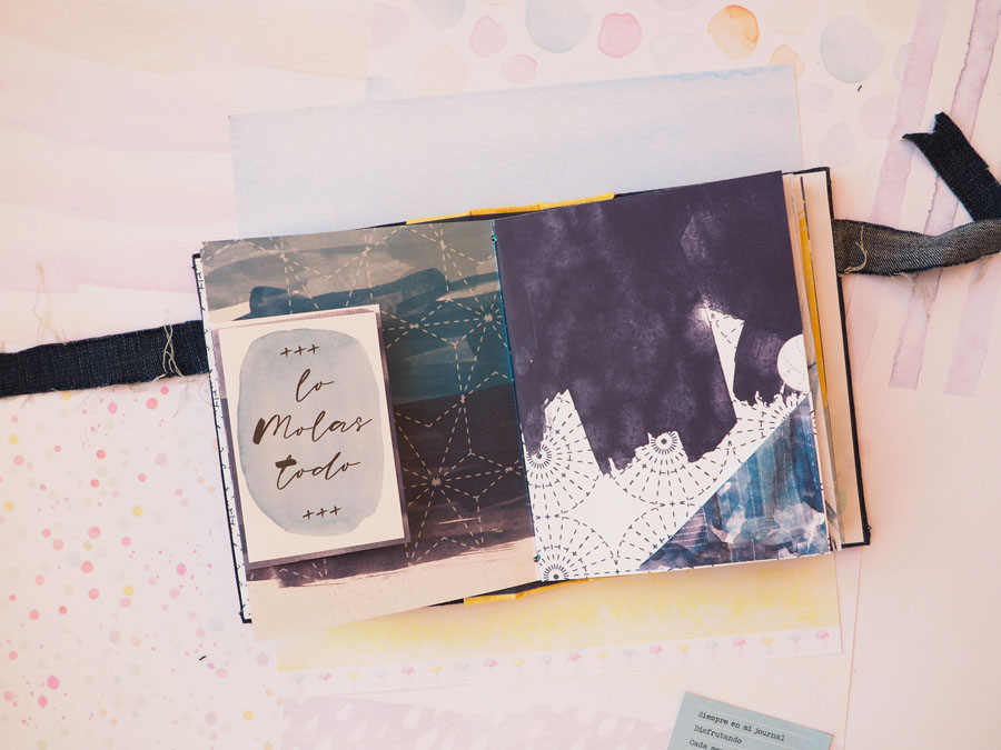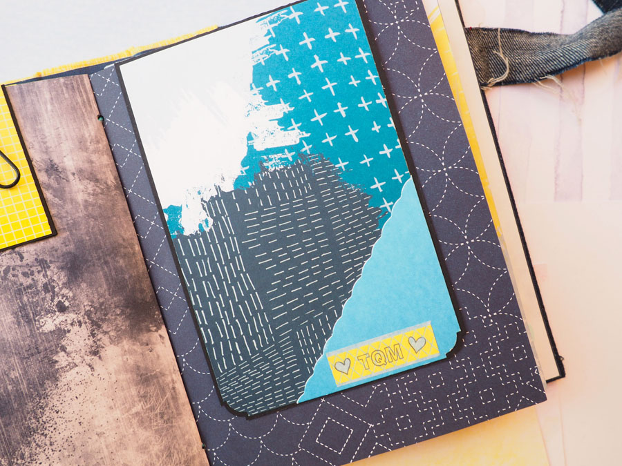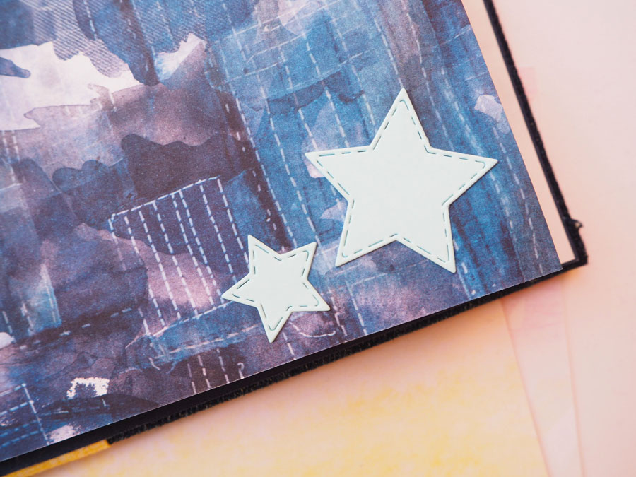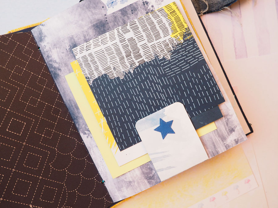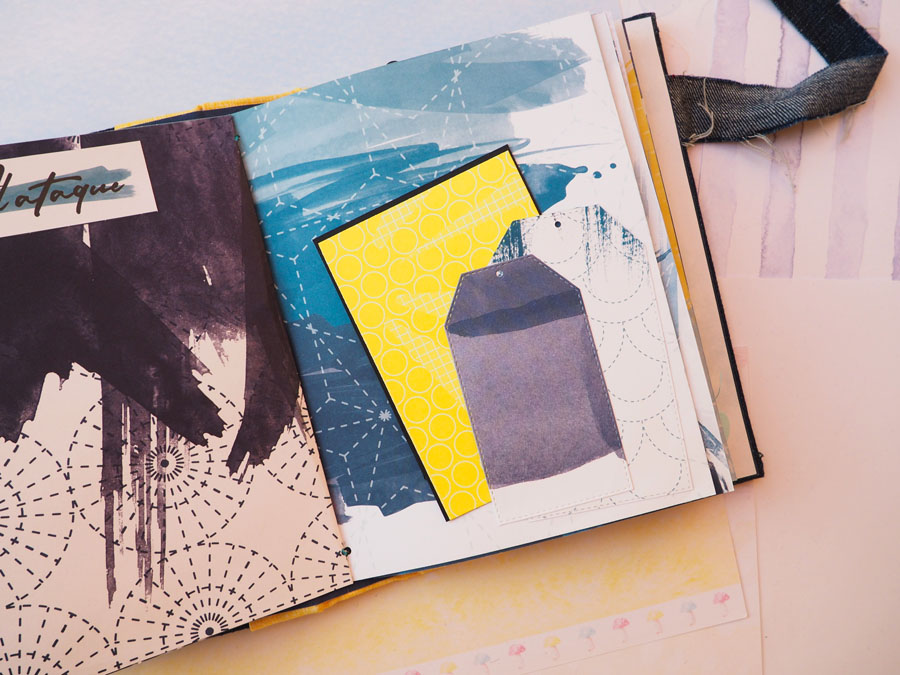 En esta ocasión es un álbum de chico hecho con la colección Boro de Paperinky, combinada con tonos amarillos y azules. Es una colección que me requetechifla, porque yo soy incapaz de hacer nada con acuarela y mix media, así que esta me gusta porque es ese estilo.
