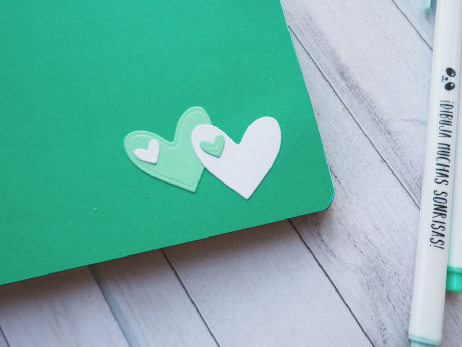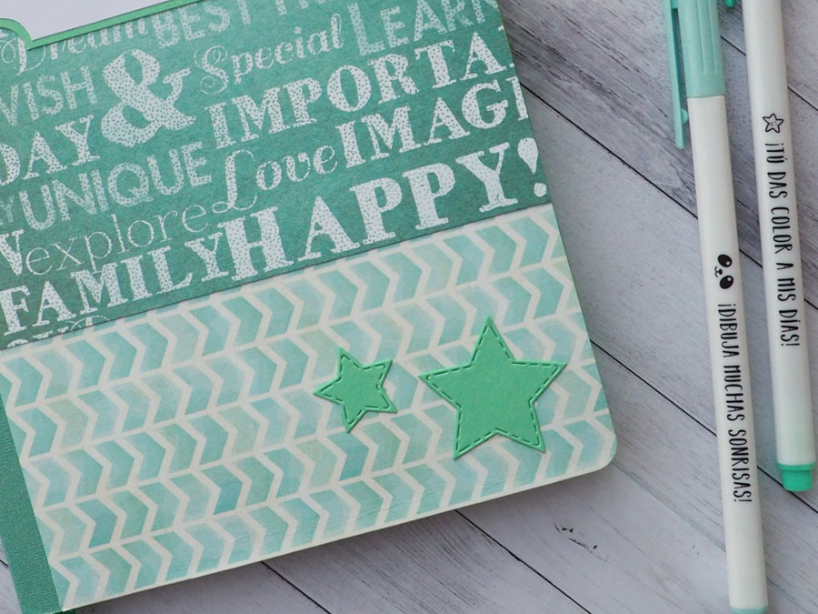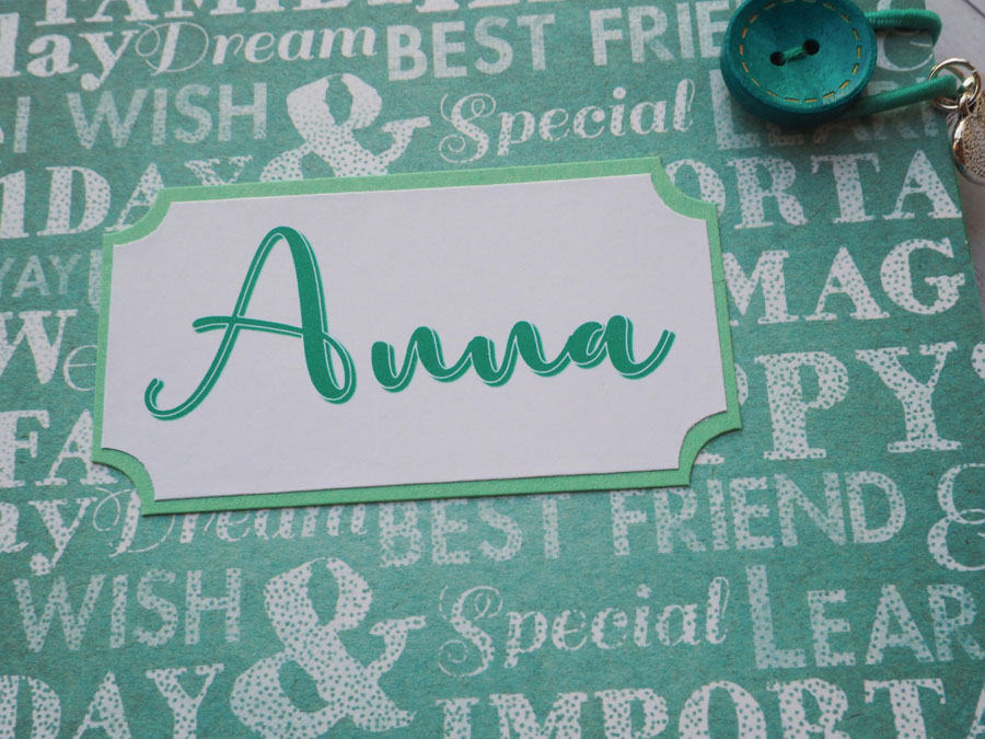 Es una libreta alterada decorada en tonos verdes. No soy muy fan del color verde, de hecho cuando me encargan algo en esos tonos me cuesta la vida crear algo bonito! pero creo que en este caso salí airosa de la situación 🙂 La decoré con dos papeles diferentes y con tela de encuadernar en el lomo. Cierre de goma con unos charms colgados, un par de estrellas troqueladas y el nombre impreso. El lateral de las hojas las tinté con tinta distress, porque la libreta estaba manchada y quería disimular la mancha, y la verdad es que me gustó el resultado. A veces de los errores en el scrap se aprenden cosas bonitas!! El interior lleva unos bolsillos con unos tags…. Os dejo todas las fotos, a ver si os gusta: