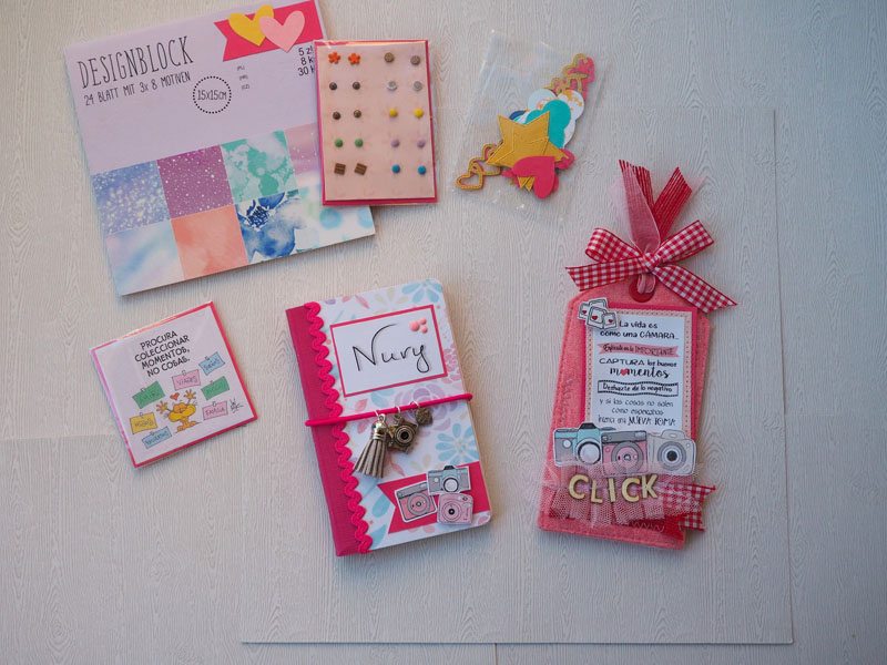 Este tag es para mi compi Nuria o nury3.1 en instagram, del grupo Tagea & Scrapea. Además del tag le envié una libreta a juego y más cositas que os muestro en la última foto. La libreta completa os la enseñaré en unos días.