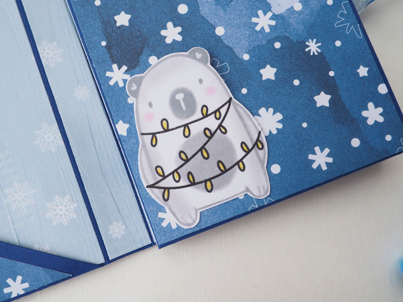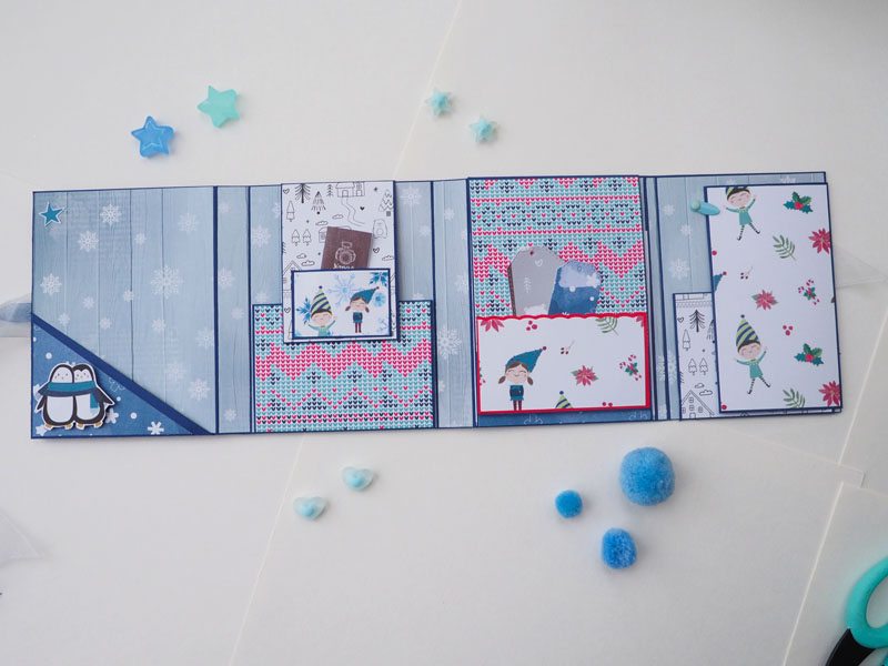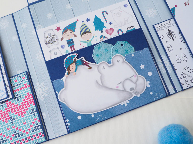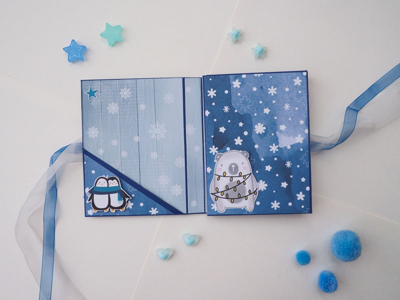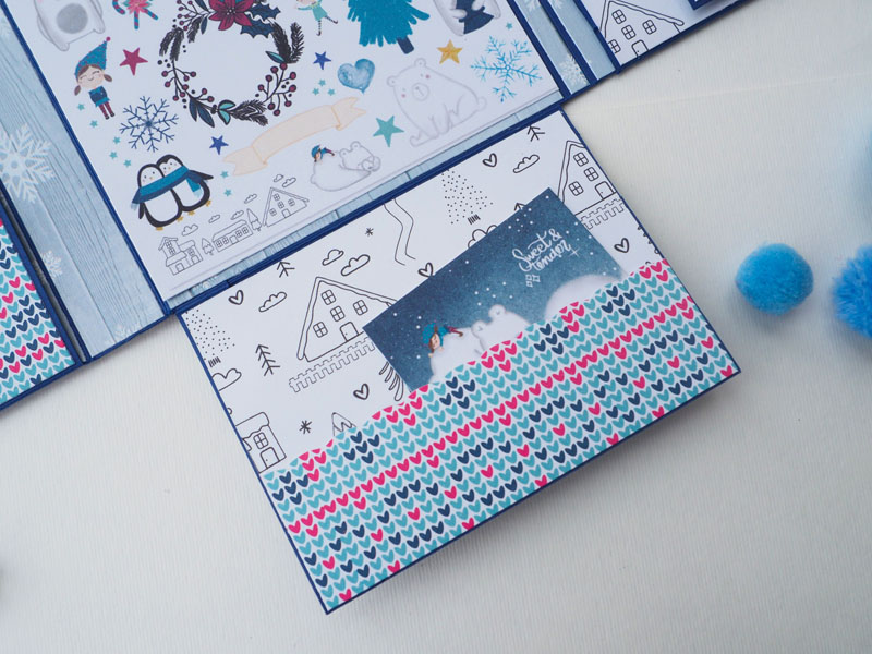 Es un mini álbum y una tarjeta a juego, hecho con la colección Estrella Polar de Sweet Möma y con Christmas Tale de Kora… es un mini con bolsillos y desplegables para que pueda llenar con fotos de Navidad…