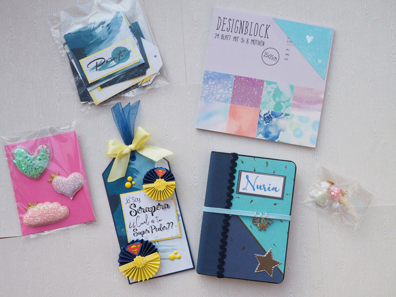 En la última foto todos los detallitos de regalo que acompañaban al tag. La libreta os la enseño en el próximo post. Aquí van las fotos: