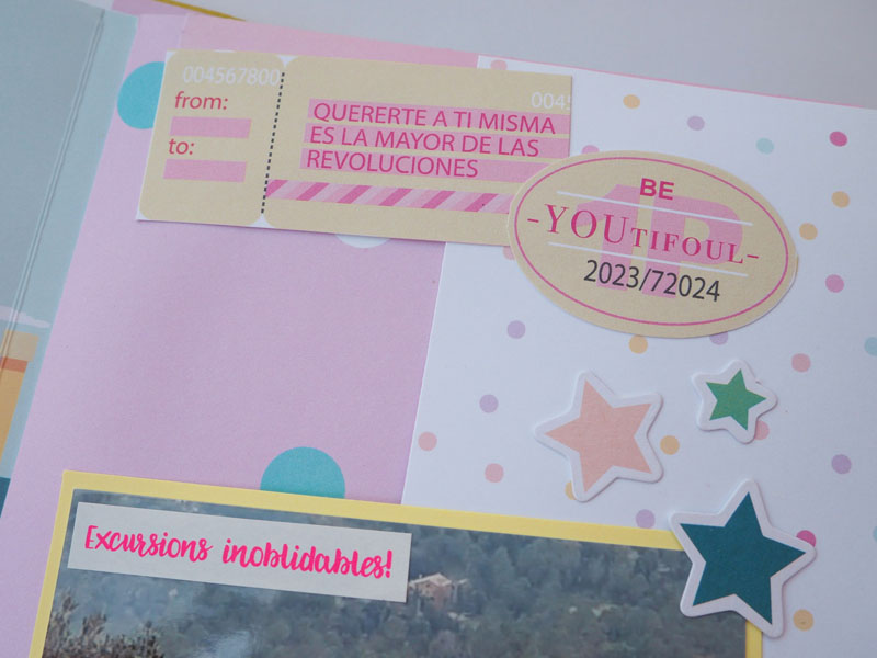 En este caso es un álbum para una amiga a la que admiro un montón. Ella es un ejemplo de superación y agradezco todos los momentos que paso con ella, porque es una de esas personas que SUMAN, y te enseñan a valorar las cosas que realmente importan. Por eso escogí esta colección, porque parece que está hecha para ella!