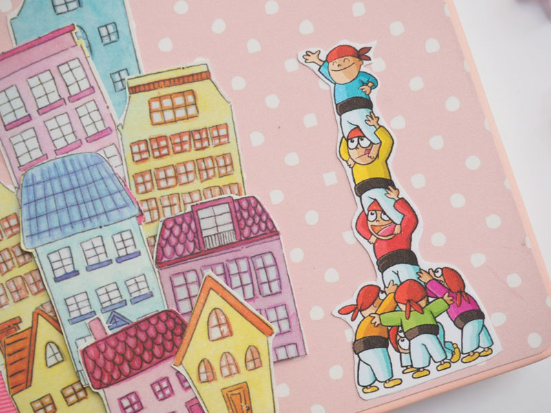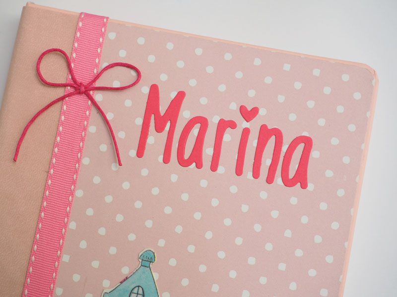Quien me conoce sabe que me encanta hacer libretas, y es uno de los regalos personalizados que más me piden, así que yo encantadísima! En este caso querían que llevara algo relacionado con Los Castellers, ya que Marina es Castellera. Por eso imprimí unos dibujos de internet para decorar la portada, además de utilizar los die cuts de la colección Piccolina Brava.