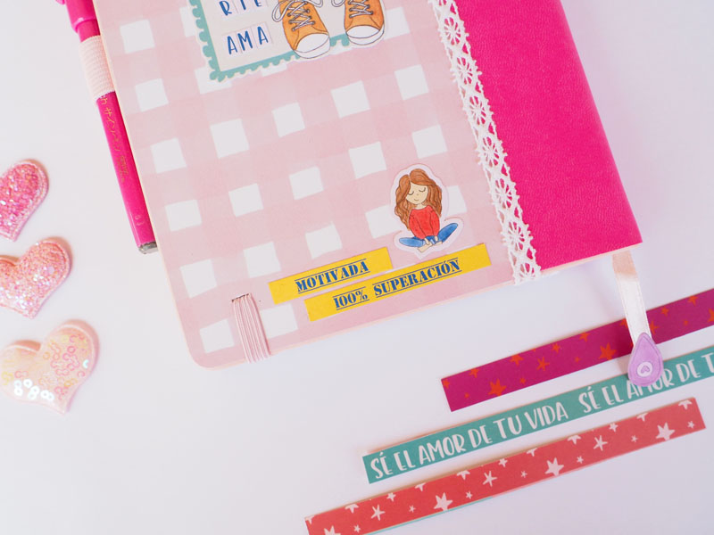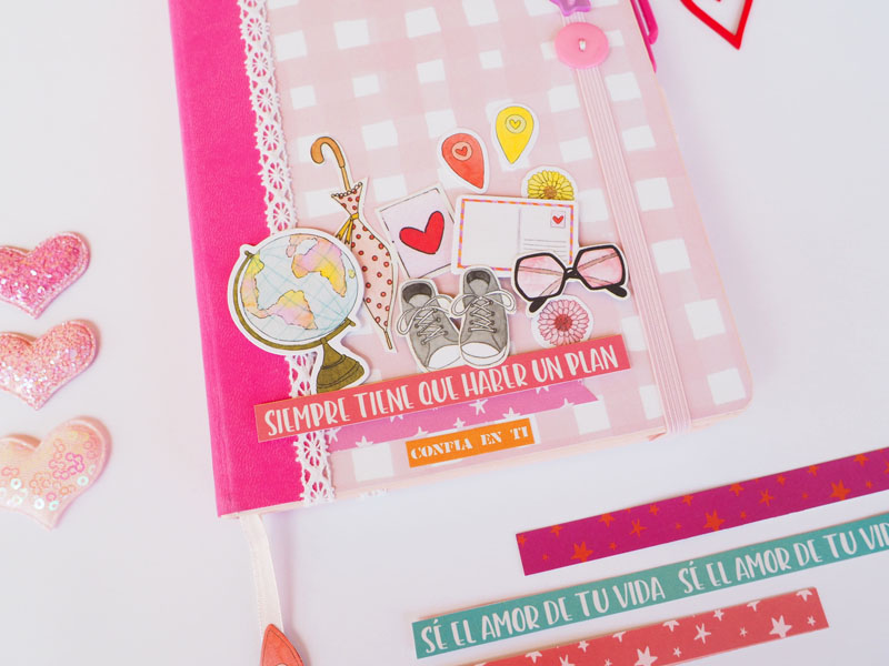 La portada en tonos rosas (como no!! 😍) decorada con un lazo, con el lomo de ecopiel, con die cuts de la colección, el nombre troquelado y la frase: «Siempre tiene que haber un plan», una frase que tiene miga… un plan, un propósito, un sueño, una meta… Algo que nos motive y nos impulse a seguir… Eso es lo que quise transmitir en esta libreta… hecha con la colección Piccolina Brava Culo inquieto, la segunda colección de @mysweetvalentine_ ❤️❤️❤️…