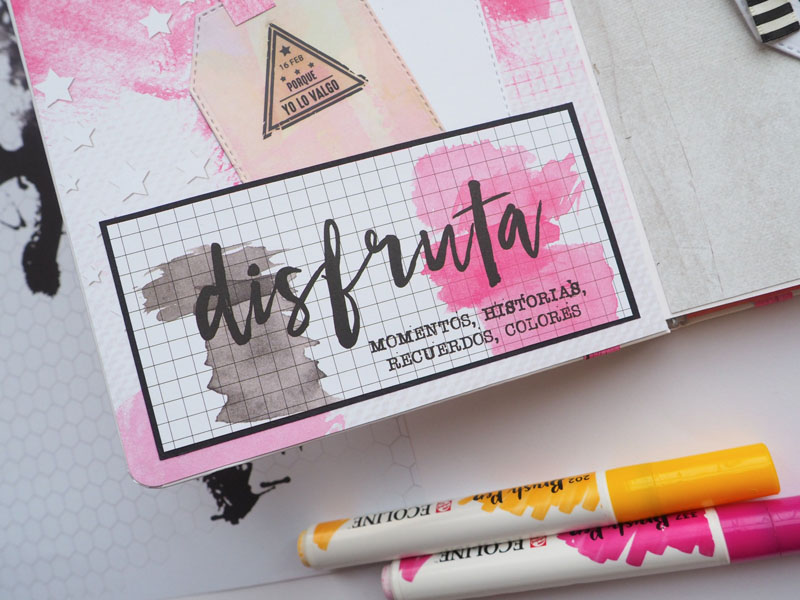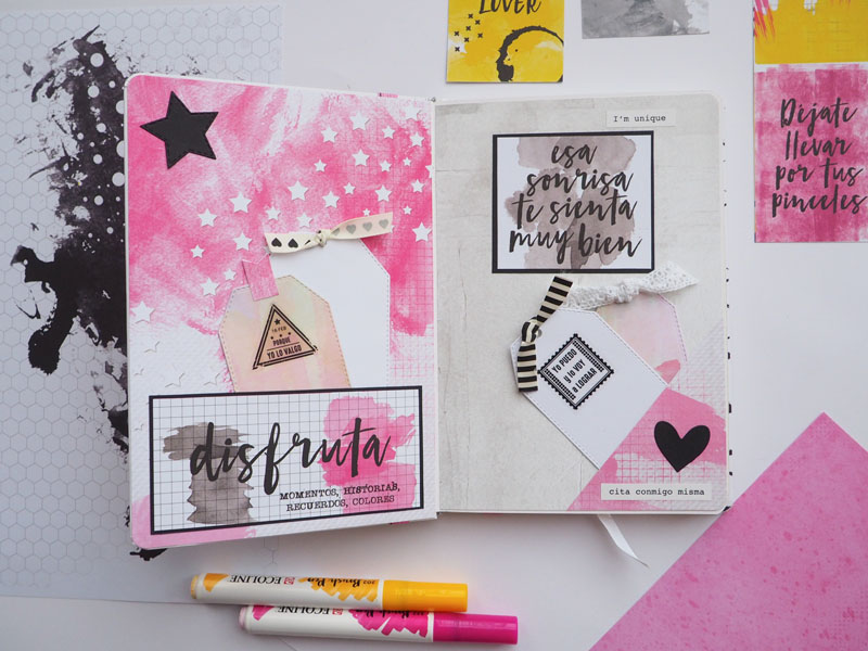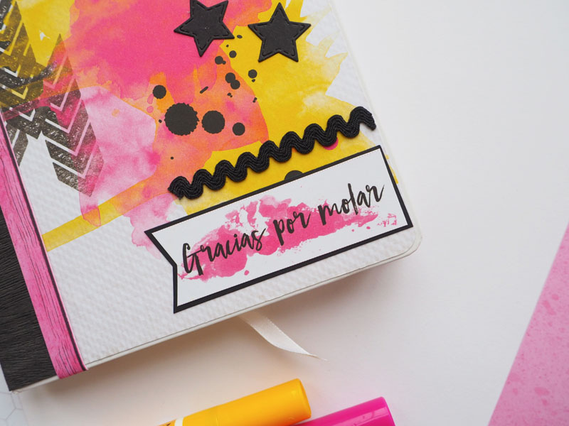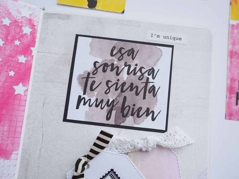 Para hacerla escogí la colección Milk Media de Paperinky, una colección mix media en tonos fucsia, amarillo y negro… una colección con mucha fuerza y muy extremada que guardaba para un proyecto especial como este 🙂