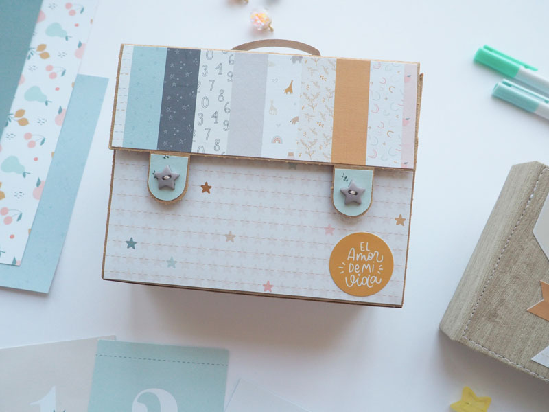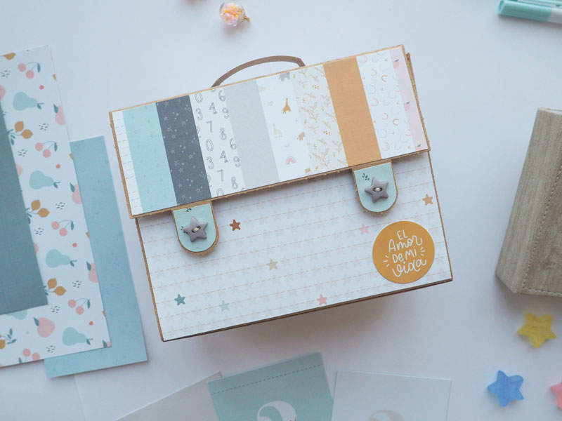 Buenas tardes de domingo! ¿como lleváis el fin de semana? espero que estéis aprovechando a tope el tiempo libre… yo he estado trabajando y por fin tengo un momento para traeros un poquito de inspiración. Un álbum de bebé que va dentro de una maletita, hecho con la colección Baby M de Lora Bailora. Encargo para una futura mamá, para que ponga las fotos del amor de su vida…