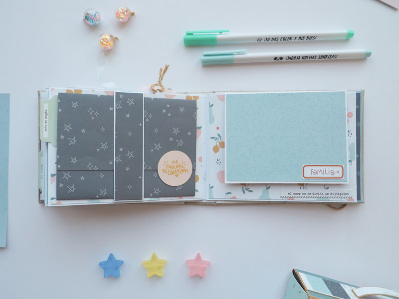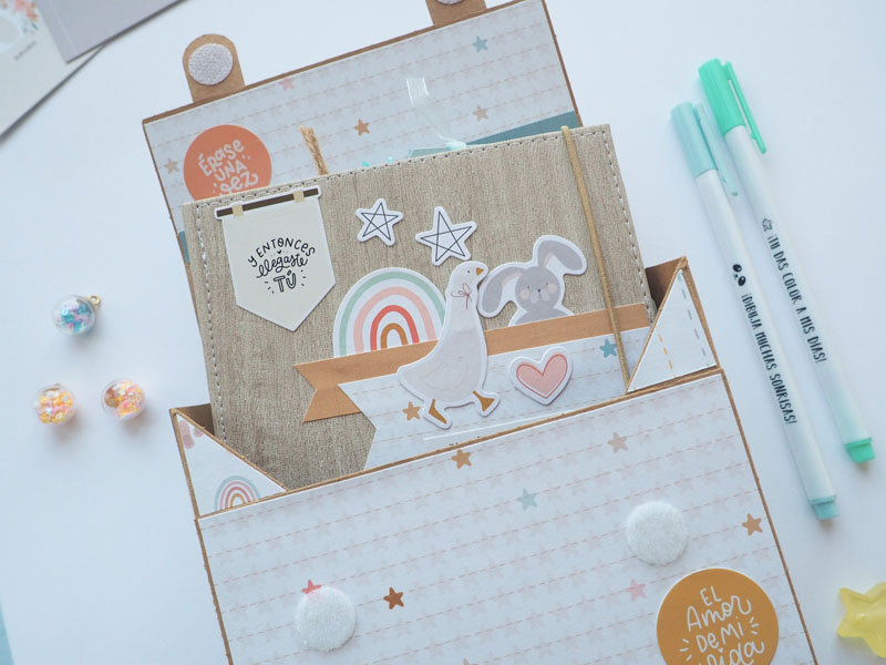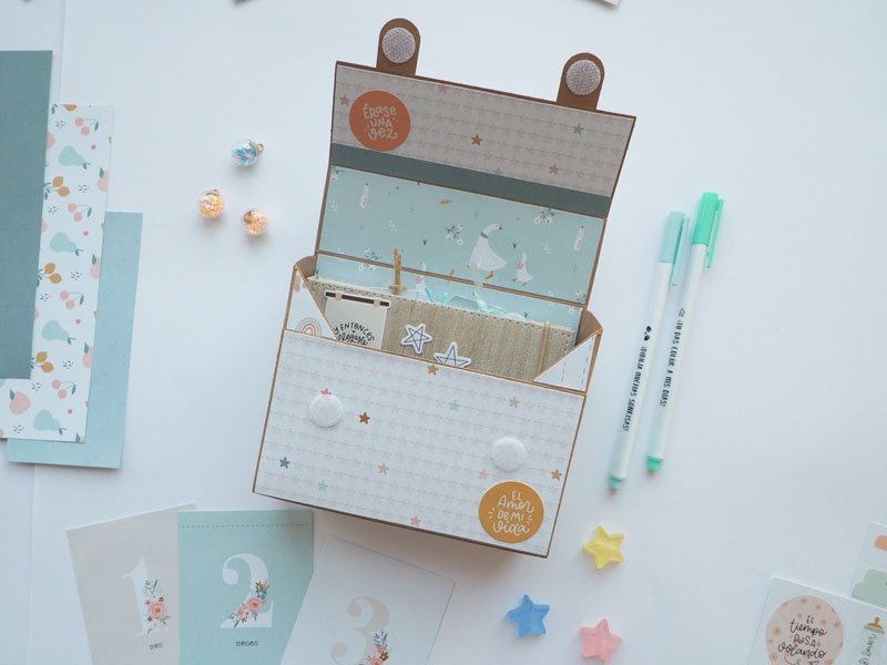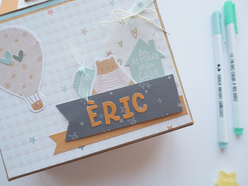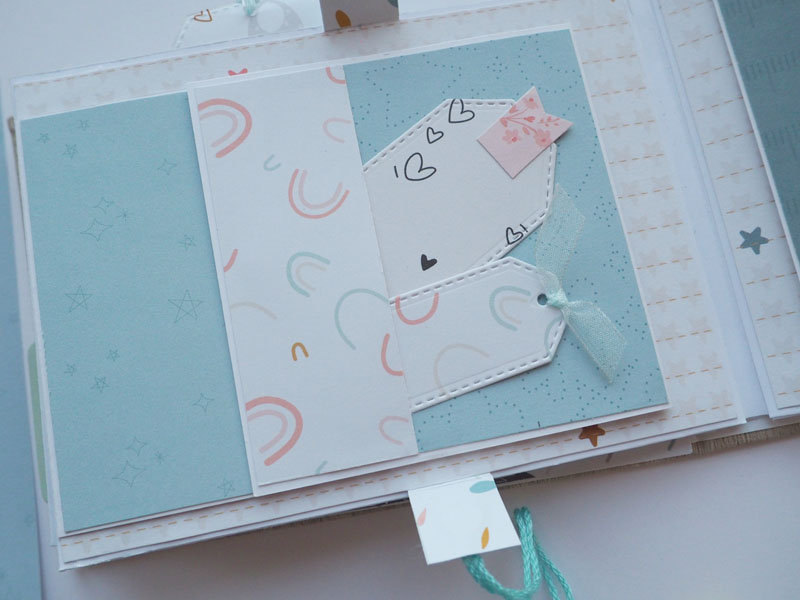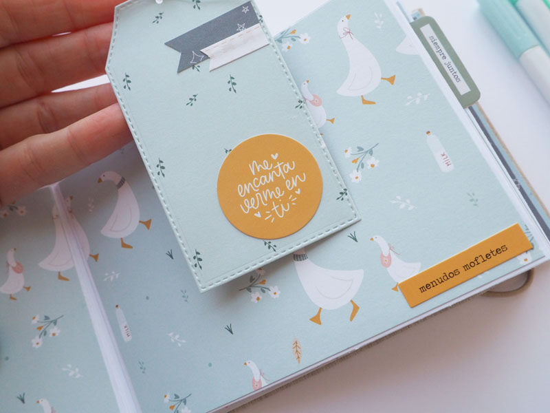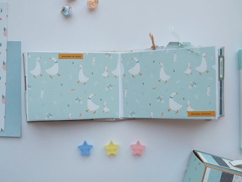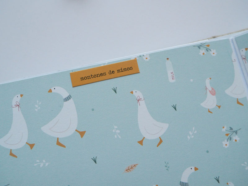 Al ser tan pequeño no he querido decorarlo demadiado, tan solo he puesto algún die cut y los demás los he dejado en un bolsillo para que la mami los ponga cuando ponga las fotos del bebé. Lo que sí he puesto son muchas frases que trae la colección, que quedan super bonitas… mirad las fotos, ya veréis! En instagram os dejo un reels para que lo veais en movimiento… (clica AQUÍ para verlo ) a ver si os gusta 🙂