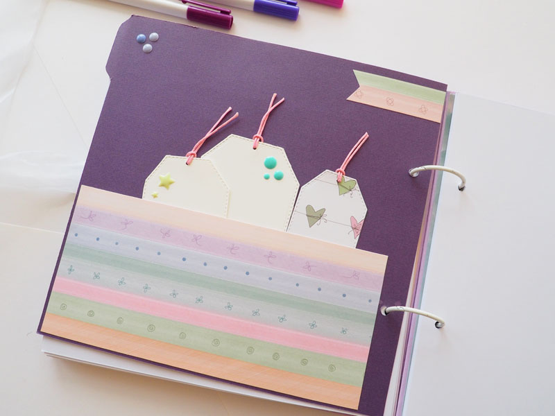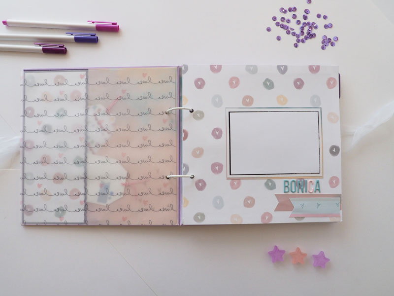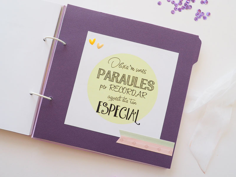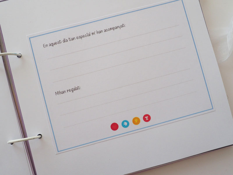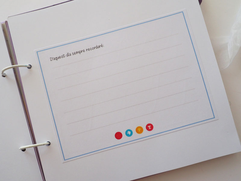 Holaa! Aquí os enseño este libro de firmas hecho con la colección de El altillo de los Duendes… Un álbum encuadernado con anillas y con un cierre de lazo. Con espacio para fotos en las primeras hojas, con desplegables y bolsillos. Después de las fotos lleva unas hojas para rellenar y hojas en blanco para firmar en la parte de detrás.