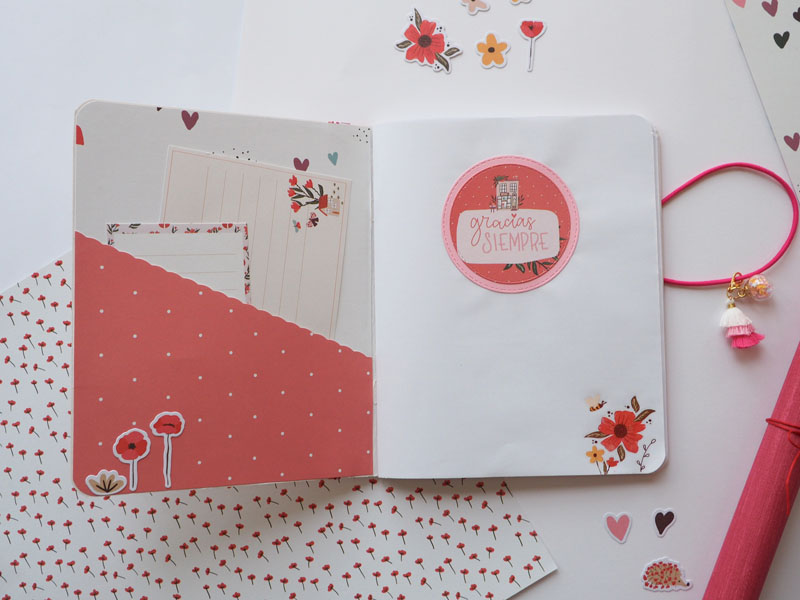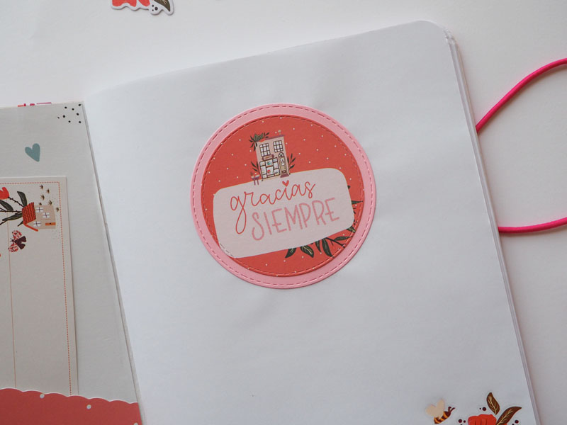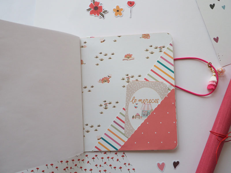 Es un cuaderno alterado, he forrado las tapas y el interior. He usado papeles de la colección, rubbons, die cuts… y de cierre le he puesto una goma con un tassel colgado y una bolita de purpurina… ya veis que es super sencilla. Mirad las fotos y contadme que os parece!