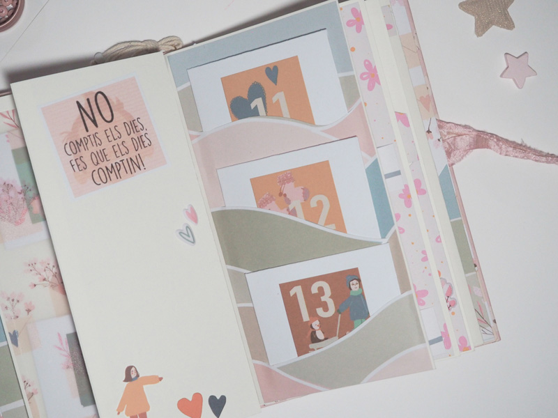 Holaa! Aquí os traigo uno de los dos calendarios de adviento que he hecho este año… En los dos casos he utilizado la colección Palomitas de My Sweet Valentine 🙂 Cada año hago dos, uno para mis peques y otro para una sobri postiza que tengo a la que quiero con locura… y las pruebas son las mismas y solemos hacer video llamada para abrirlo juntas…