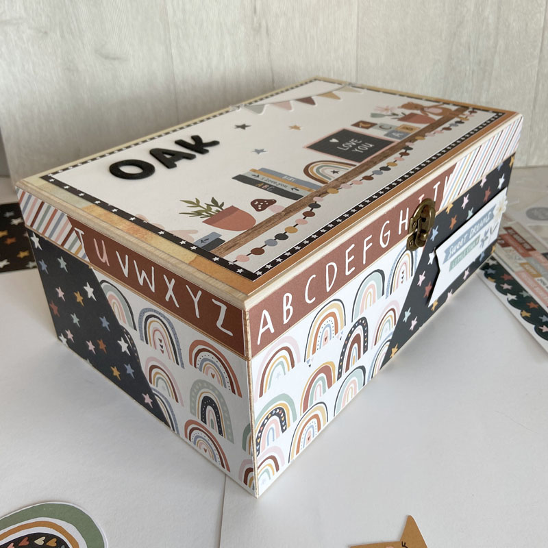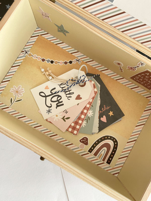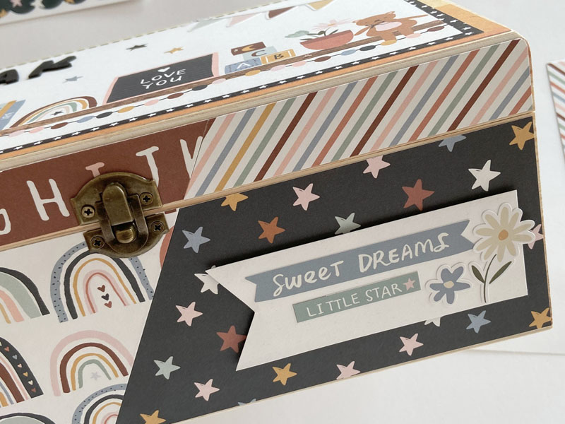 Buenos días de domingo… Hoy os traigo una cajita de bebé decorada con papel decorado con la colección Boho Baby de Simple Stories. Es una colección muy colorida en tonos marrones y azules. La caja es muy fácil de hacer y muy original para regalar, ya sea sola o rellena de otros regalitos como algo de ropa, de baberos, de pañales… hay muchas opciones!
