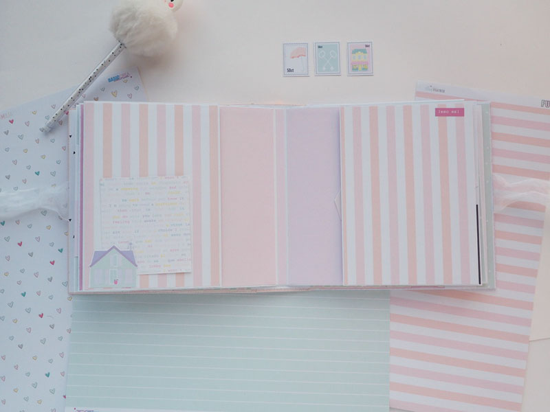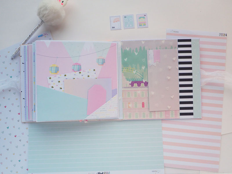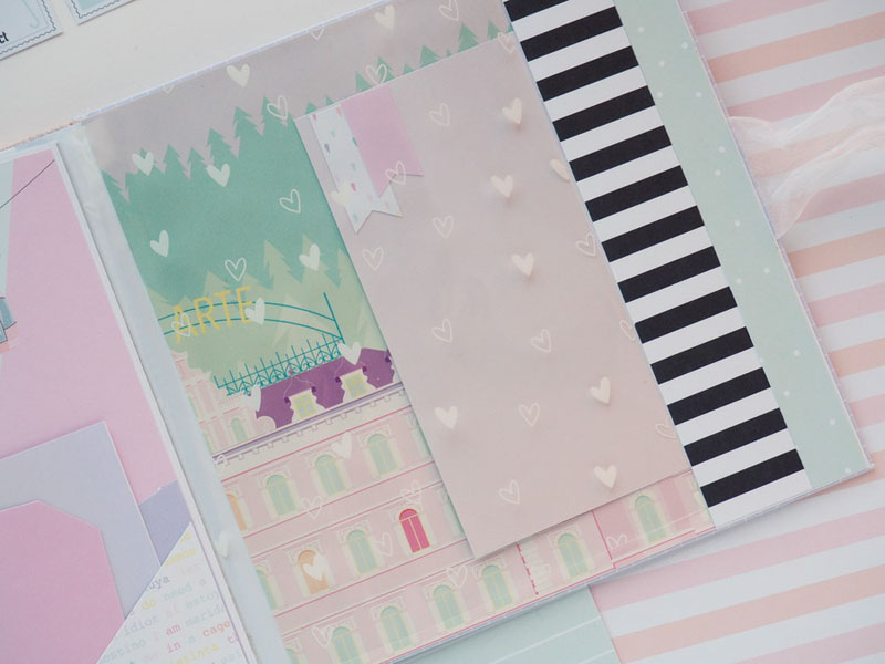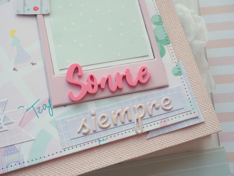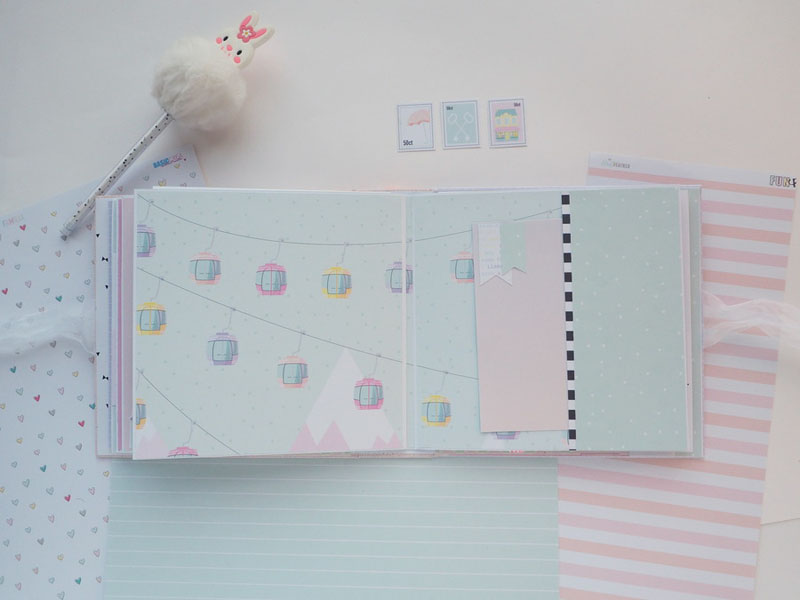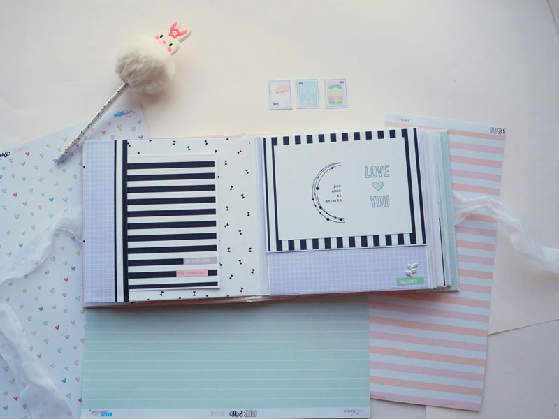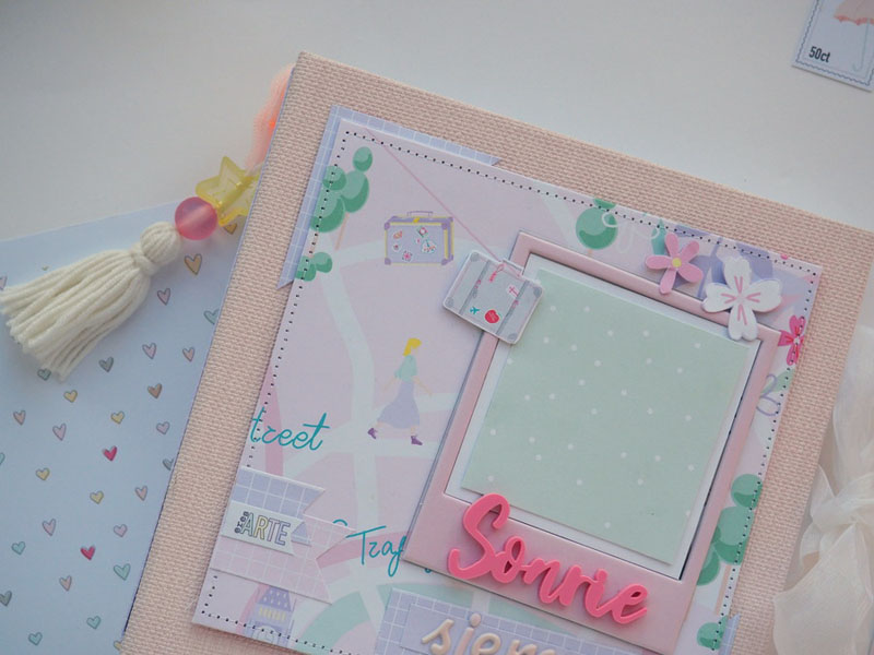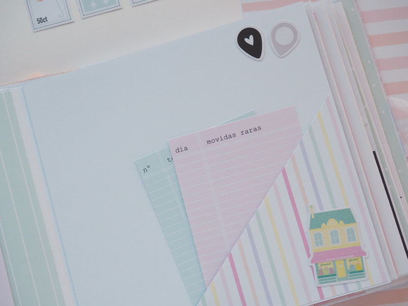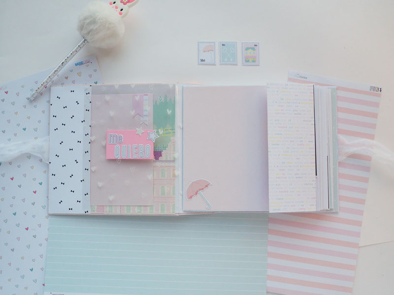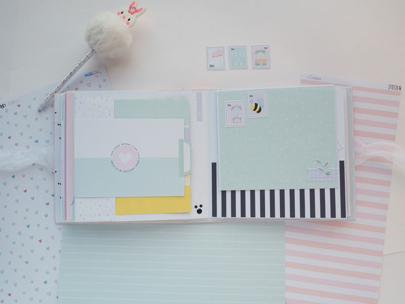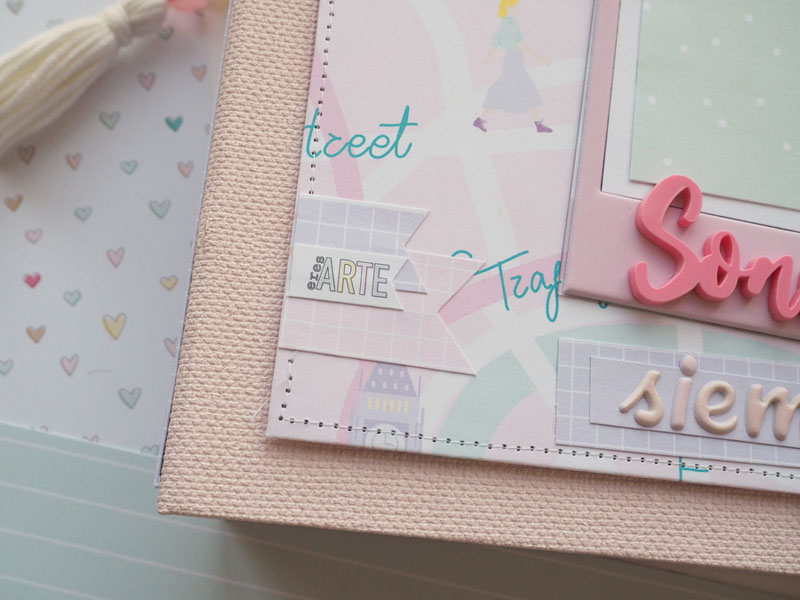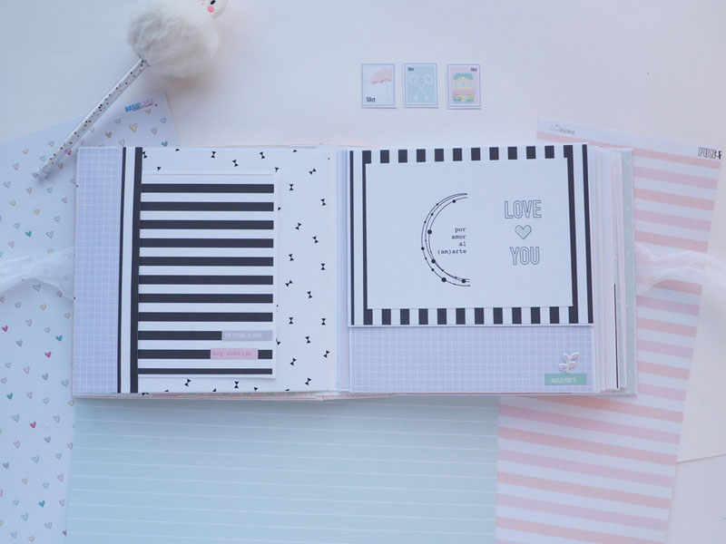 Es un álbum hecho con la colección Eres Arte de Adela de The Mint Feather que es una maravilla, en tonos pastel, muy dulce… un álbum con la portada forrada con papel tepper y cartones encima a modo de decoración, cosidos a máquina. Por dentro lleno de desplegables y bolsillos, llenos de tags con frases positivas y mensajitos de los que a mí me gustan. Lleva un par de hojas de acetato, una cascada que abre hacia arriba y decorado con los die cuts de la colección. Aquí tenéis un reels que colgué en instagram para que veáis el interior y ahora os dejo fotos: