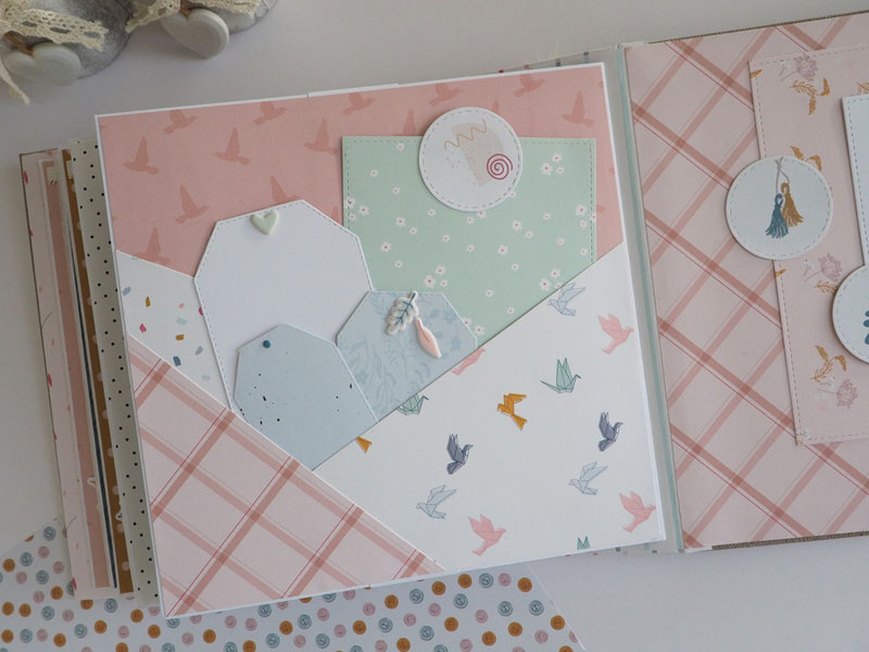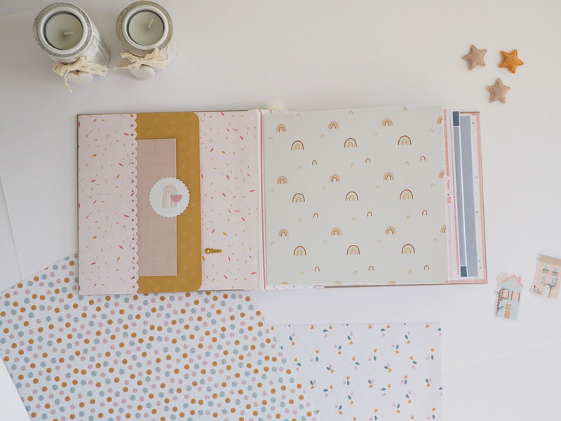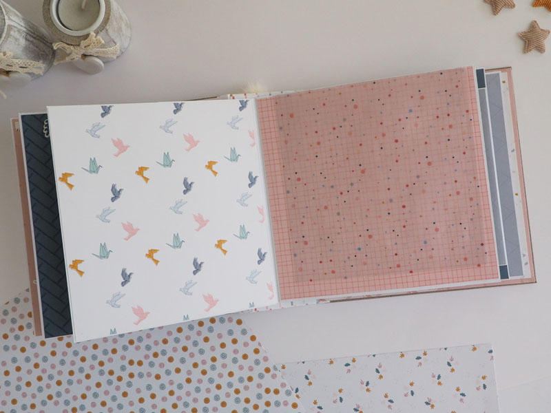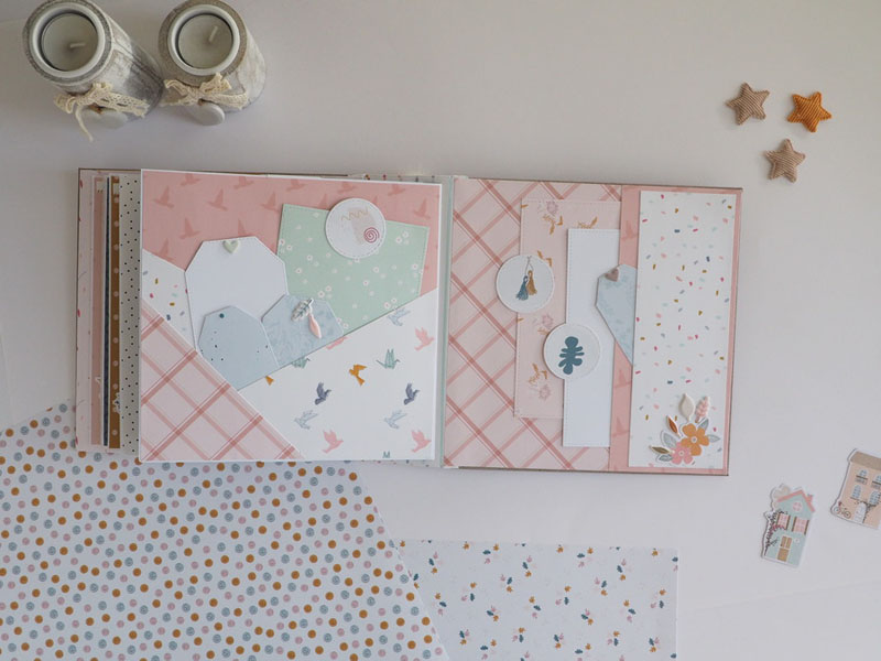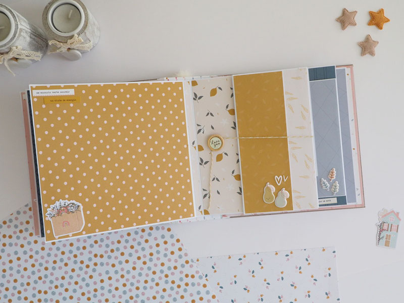 Petits Grans Moments (o Pequeños Grandes Momentos) es el título de este álbum hecho con la colección Un nuevo abril de Lora Bailora… Una colección muy dulce en tonos marrones, azules y rosas…