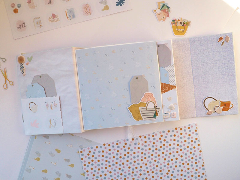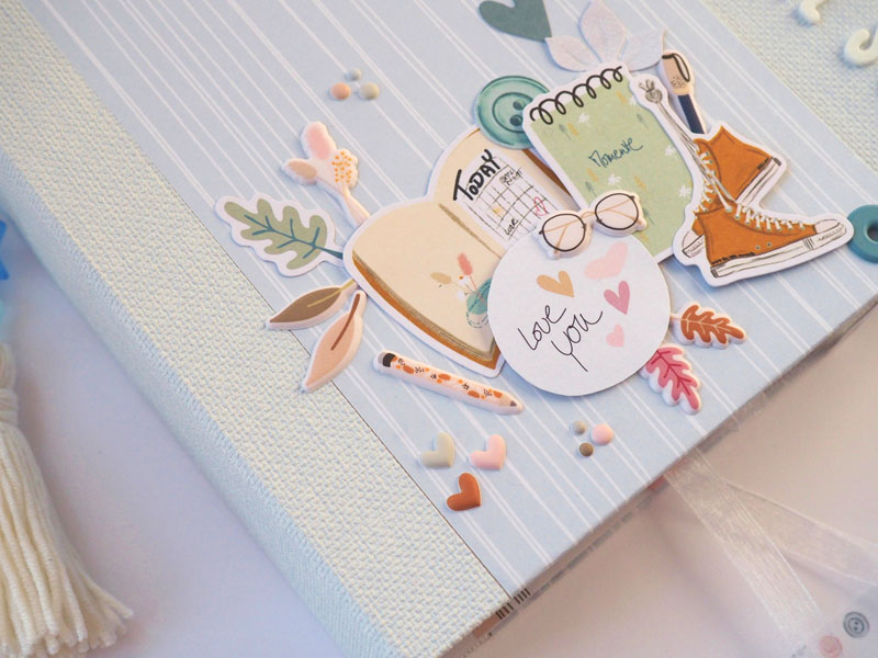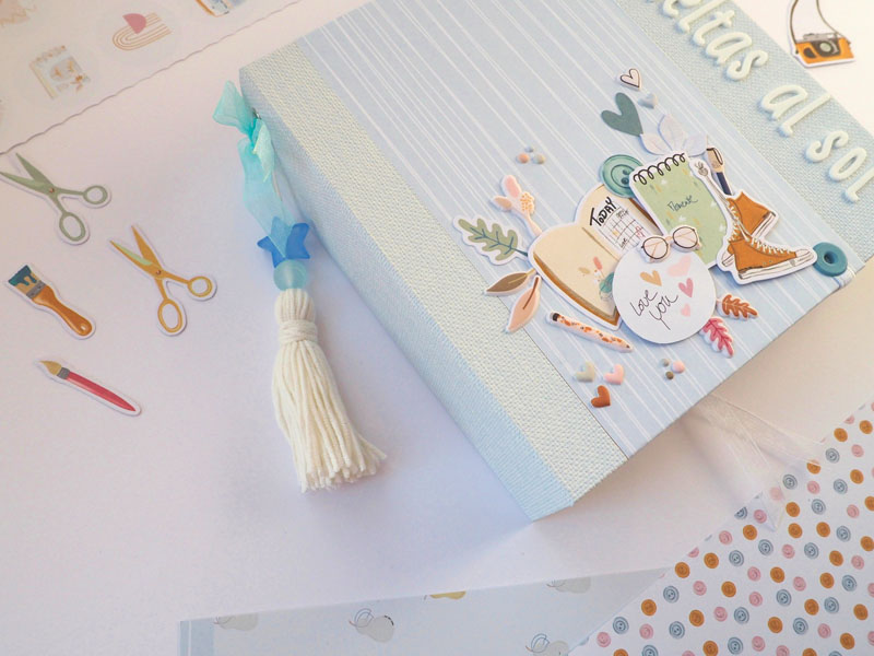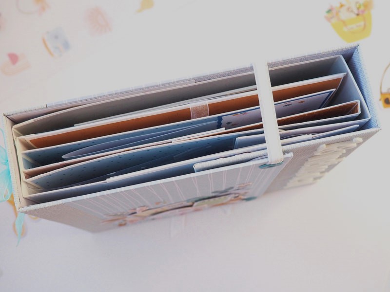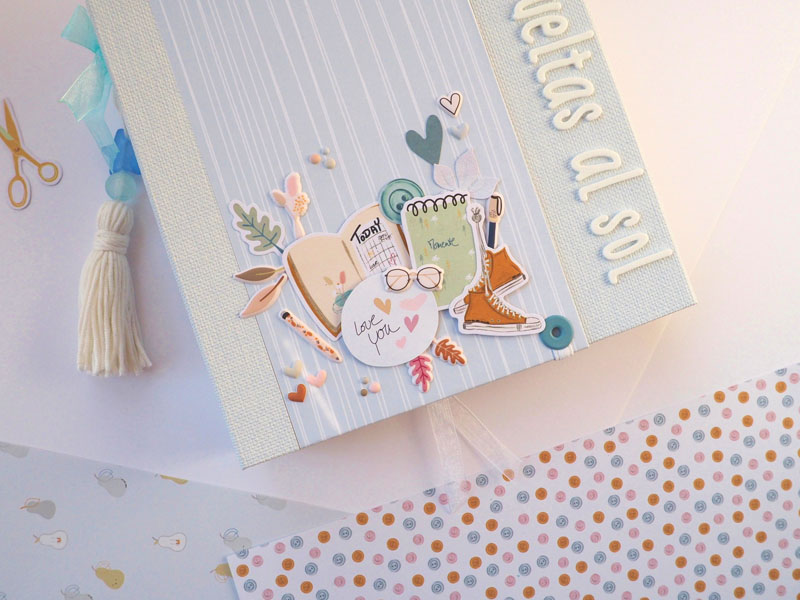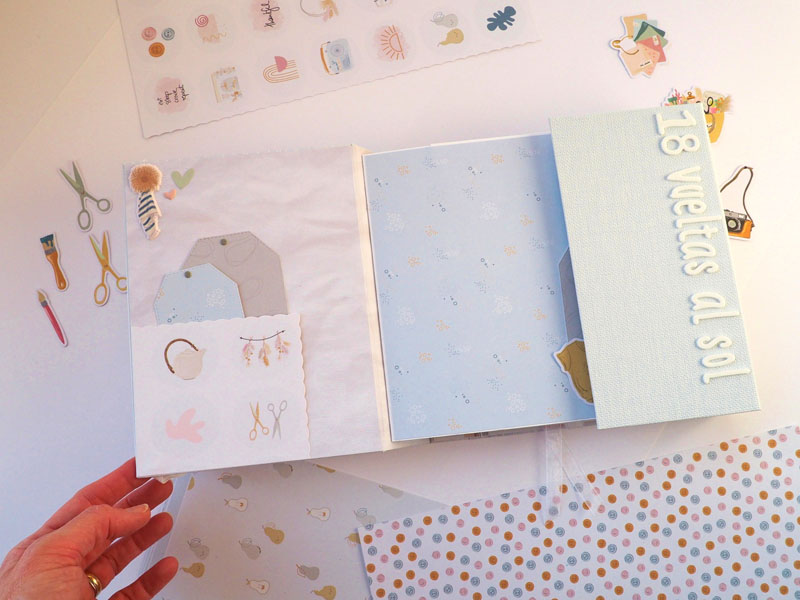 Por fuera al llevar solapa de cierre, es como una caja. Por dentro lleva encuadernación de espina con desplegables y bolsillos y va decorado con los diecuts y foams de la colección que son muy cukis… la verdad que la colección lleva tantos detallitos que no hace falta inventar mucho para que salga algo tan bonito como ésto (aunque esté feo que yo lo diga :-))