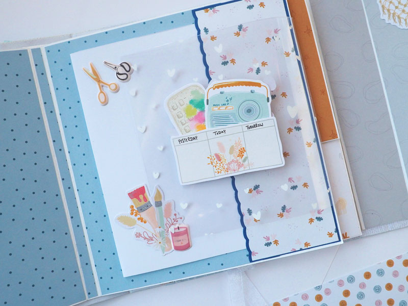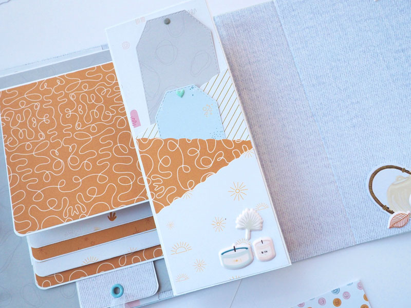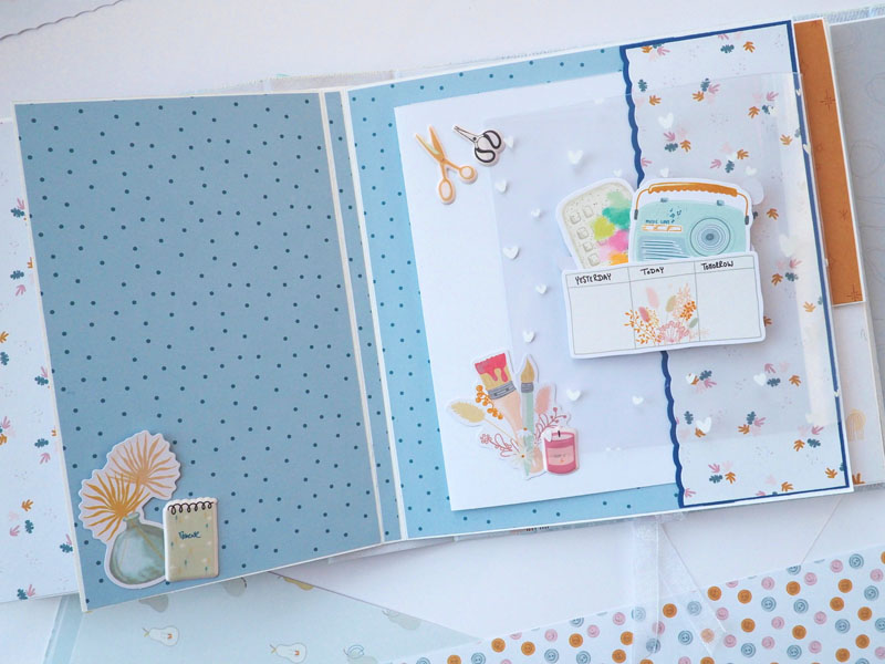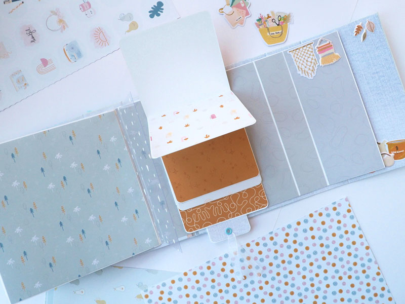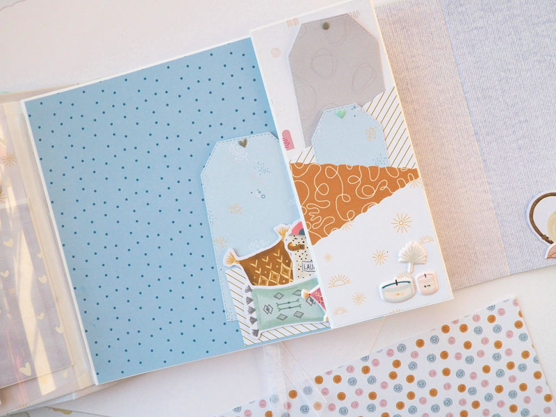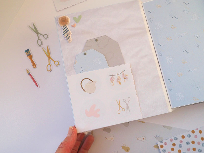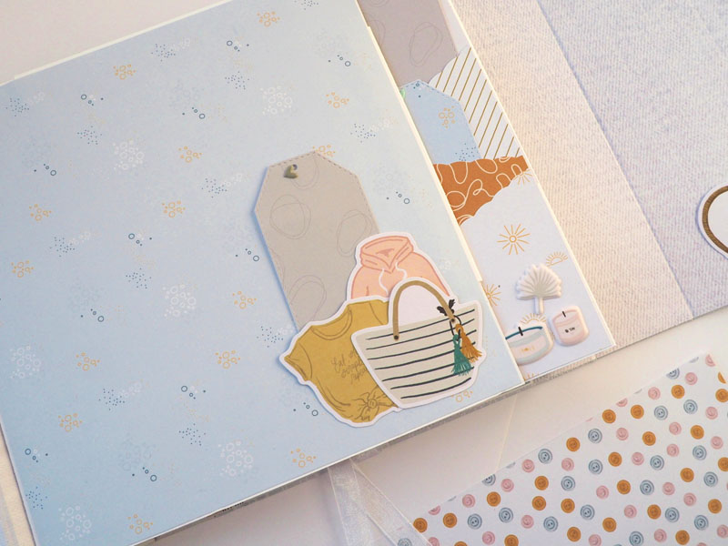 Por fuera al llevar solapa de cierre, es como una caja. Por dentro lleva encuadernación de espina con desplegables y bolsillos y va decorado con los diecuts y foams de la colección que son muy cukis… la verdad que la colección lleva tantos detallitos que no hace falta inventar mucho para que salga algo tan bonito como ésto (aunque esté feo que yo lo diga :-))