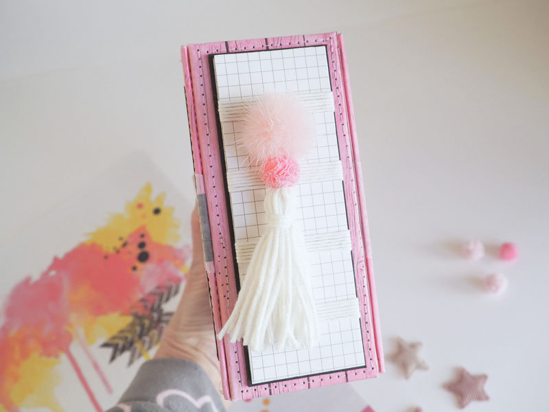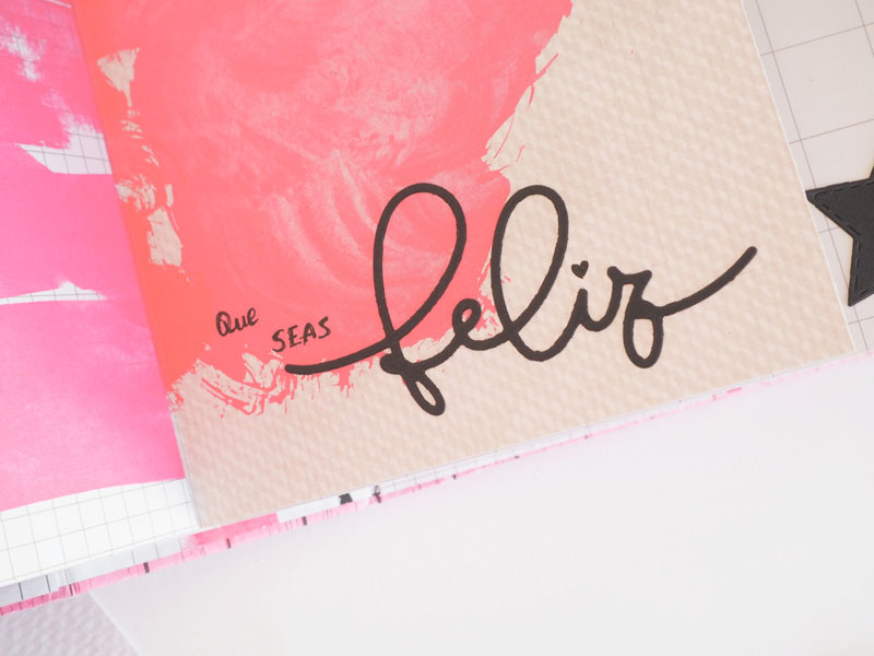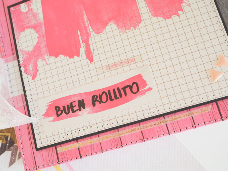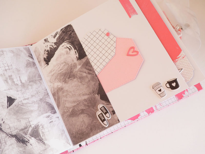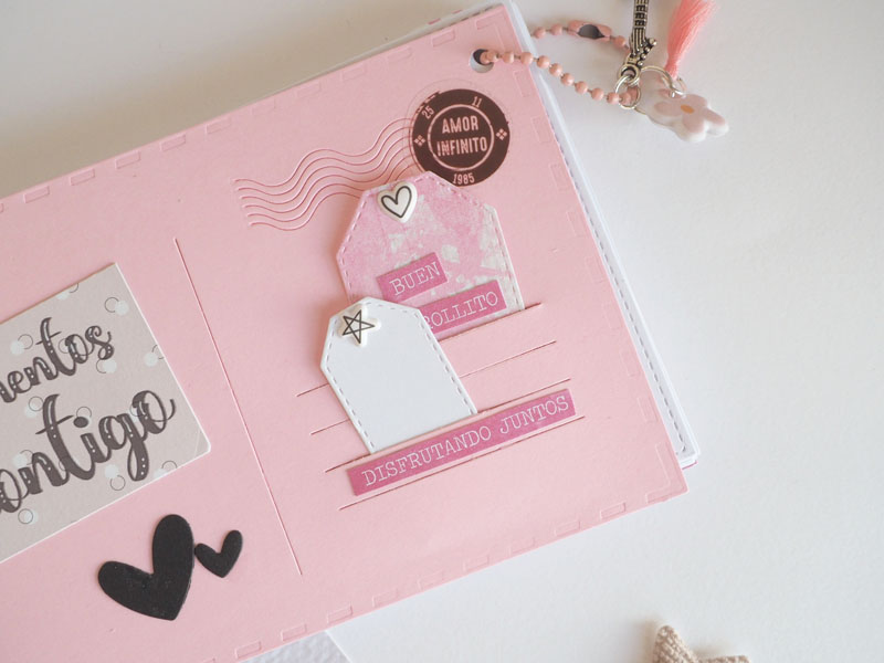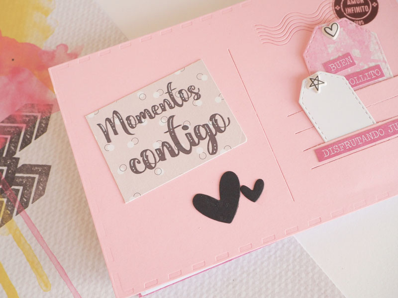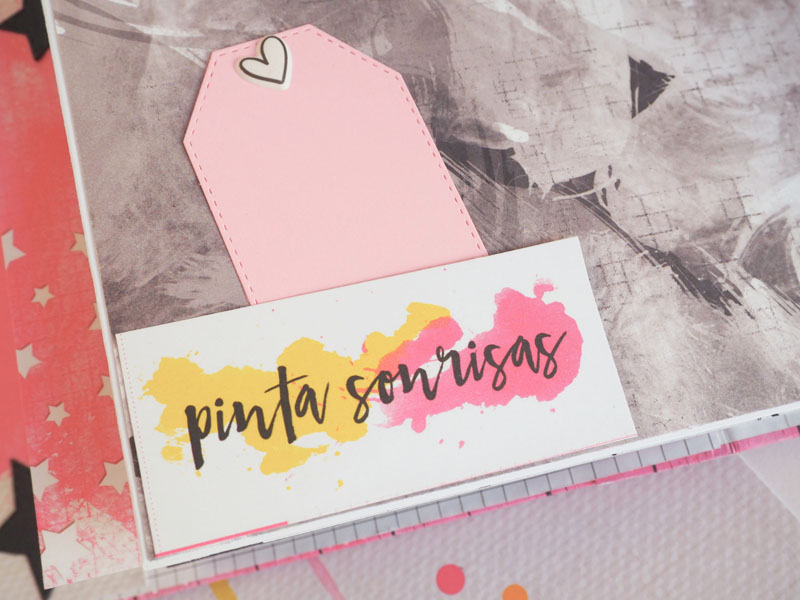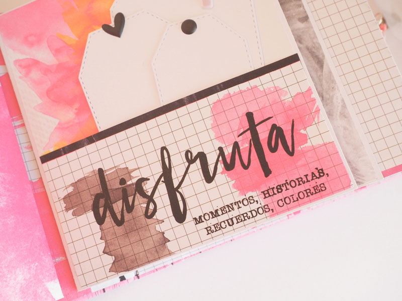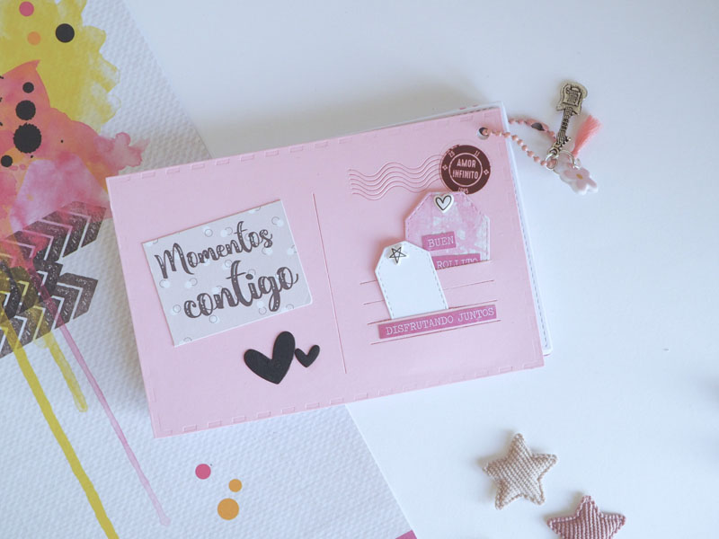 Este mini está hecho con la colección Milk Media de Paperinky, y es una colección que me encanta porque soy una negada con el mix media, así que esta cole me chifla. Además a Cris le pega y es muy de su estilo. La portada va forrada con papel madera en fucsia y de título «Capturando momentos» en metacrilato. Por dentro no tiene nada especial, tan solo los papeles a doble cara y algunos desplegables y bolsillos con tags para que pueda llenar de frases y recuerdos. Pero es que la colección es tan cañera que no necesita mucha historia… Pero mirad las fotos y ya me decís que os parece: