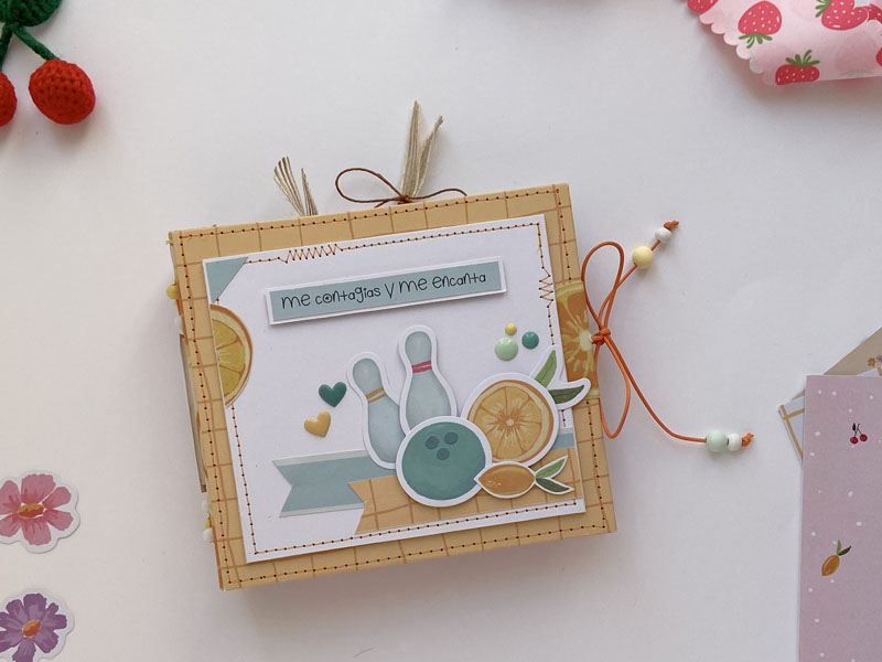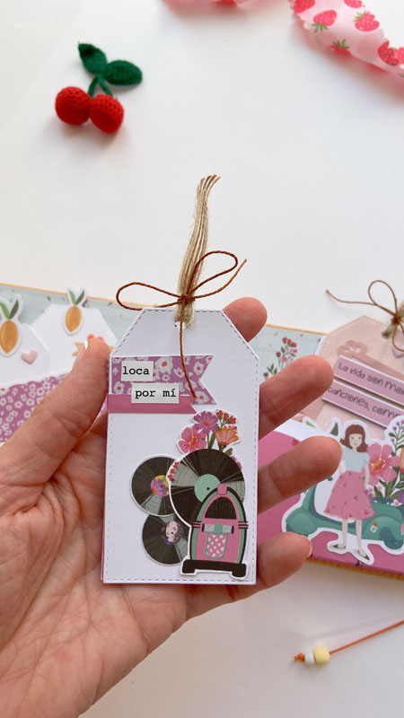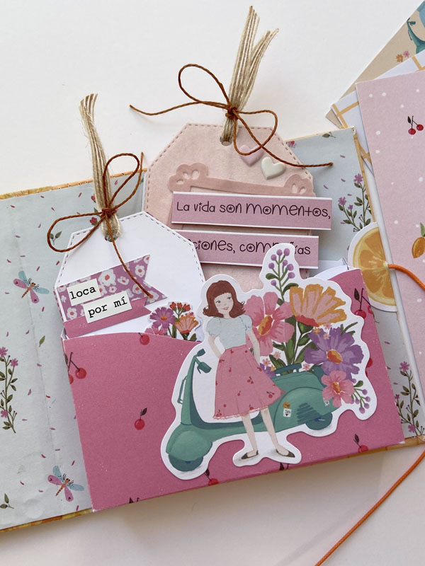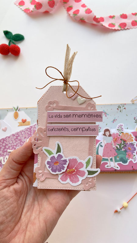 Me contagias y me encanta es el título del álbum, y una de las frases que trae la colección. Es un mini sencillísimo que dentro lleva unos tags a modo de mini álbum, pero queda muy resultón…