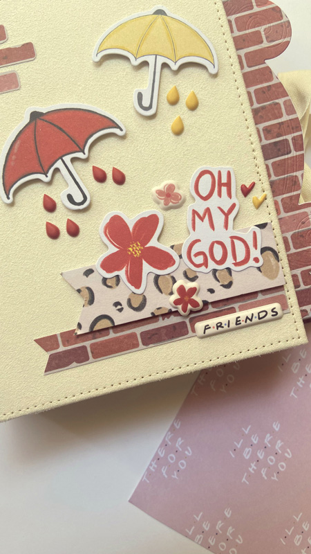 Va decorado con unos die cuts y unos paraguas muy cukis que trae la colección☺️ y unas gotitas de puffys, unas flores… El lomo forrado con un papel de leopardo y la contraportada con el papel de ladrillos… El interior combinado con espina y un desplegable al final… mirad el video y contadme que os parece, os leo en comentarios! 😊😊😊