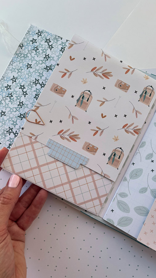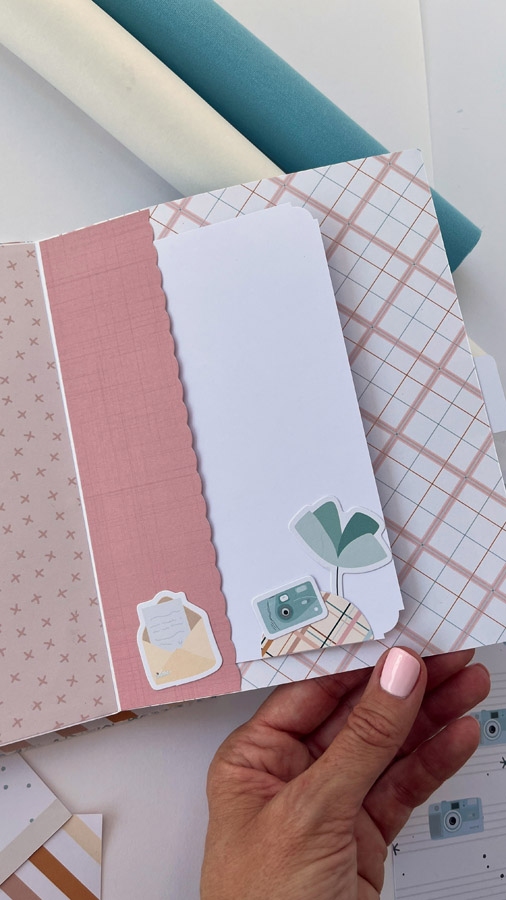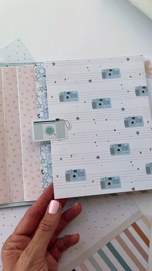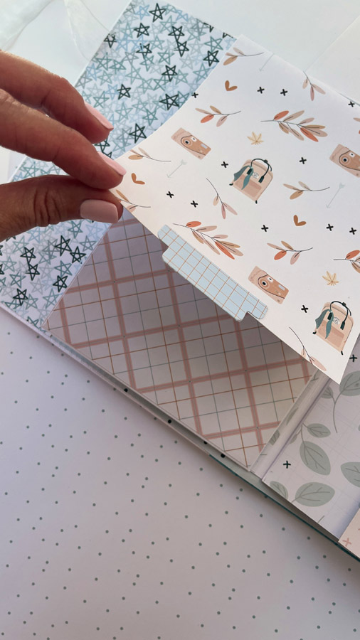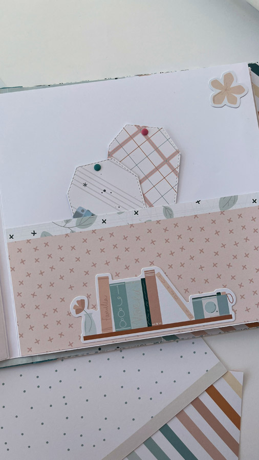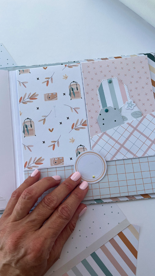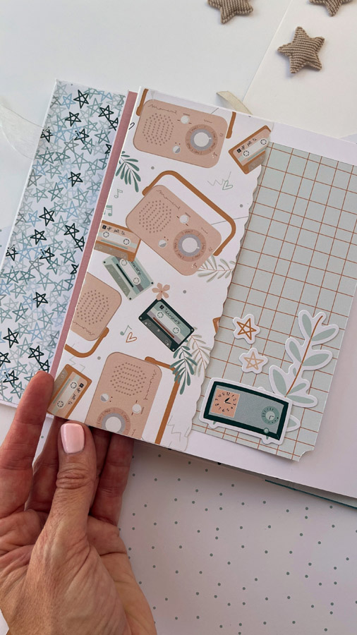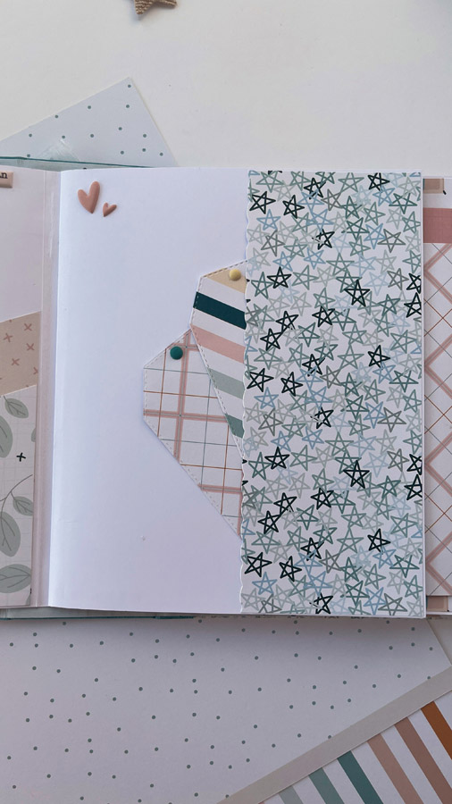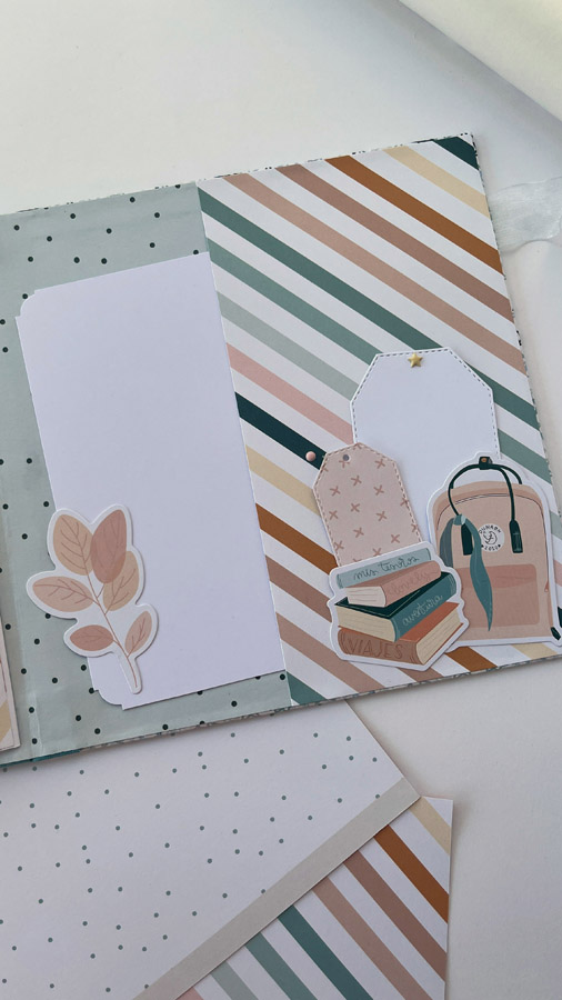 Un álbum maxi hecho con la colección Tempo de Dunaon, una cole muy elegante (como todas las que hace esta chica que son una monada!), con estructura de espina, con muchos desplegables y bolsillos para llenar de recuerdos de ese día tan especial.