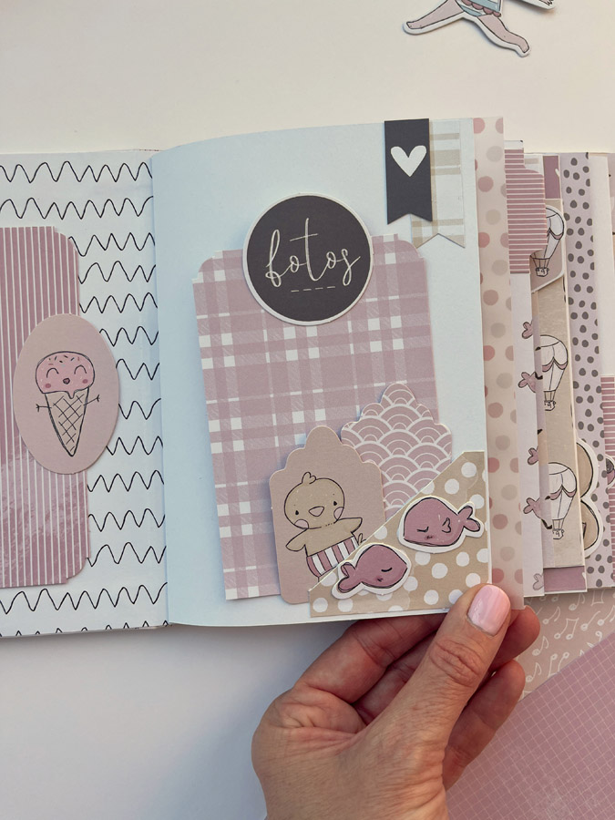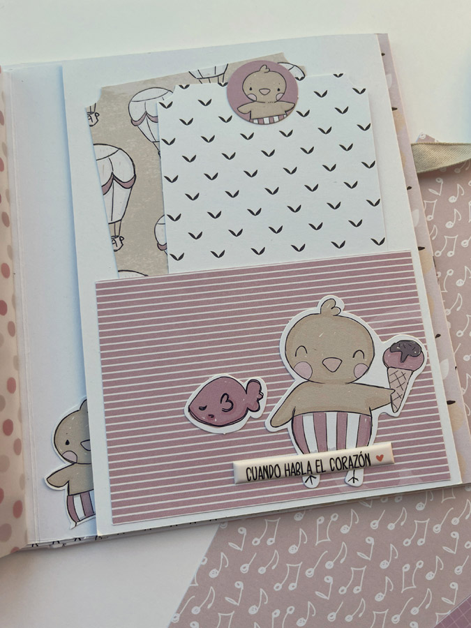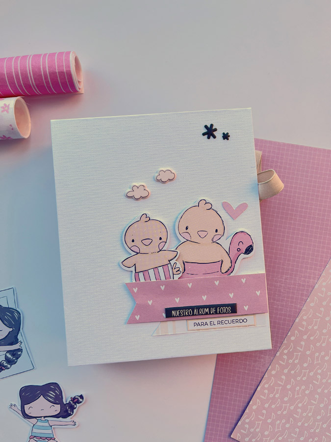 Aquí estoy para enseñaros un este mini de bebé… Es un mini para una personita muy especial para mí, para que ponga las fotos de sus peques. Un álbum hecho con la colección Libertad de Alúa Cid… una cole muy dulce en tonos rosas y naranjas…
