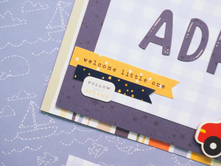 Es súper sencillo de hacer y un bonito detalle para hacer un regalo. En este caso está hecho con papeles y die cuts de la colección Welcome Baby boy de Echo Park Paper, y ya veis que se necesita muy poquito material para hacer este proyecto.