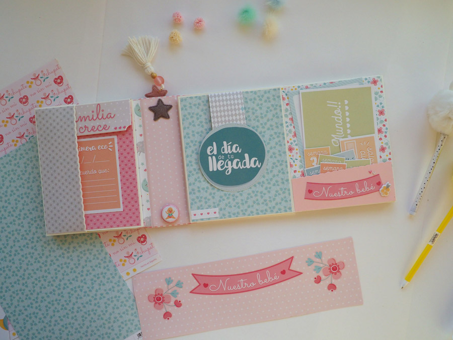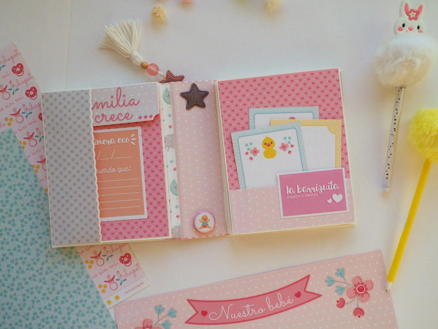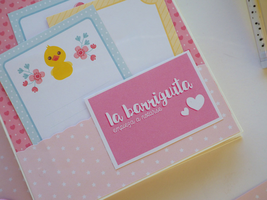 ¡Buenos días! Hoy vengo a enseñaros un mini álbum muy dulce, hecho con la colección «Nuestra Peque» de Anita y Su Mundo y con tarjetas de Iriri Studio de tema embarazo. Fue un regalo para una amiga embarazada, para llenar de fotos del embarazo y luego de la bebé que se llama Bruna.