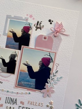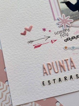 Es el título de este layout, regalito para mi sobri por su cumple. La base con papel de acuarela blanco. La misma foto impresa en blanco y negro y color en diferentes medidas, unos die cuts de Dunaon y un par de tags. La frase combinando diferentes abecedarios y algunos sellitos. Debajo de las fotos unos trozos de papel decordo y poca cosa más. Y es que a veces con muy poco material se puede hacer un detallito especial y personalizado.