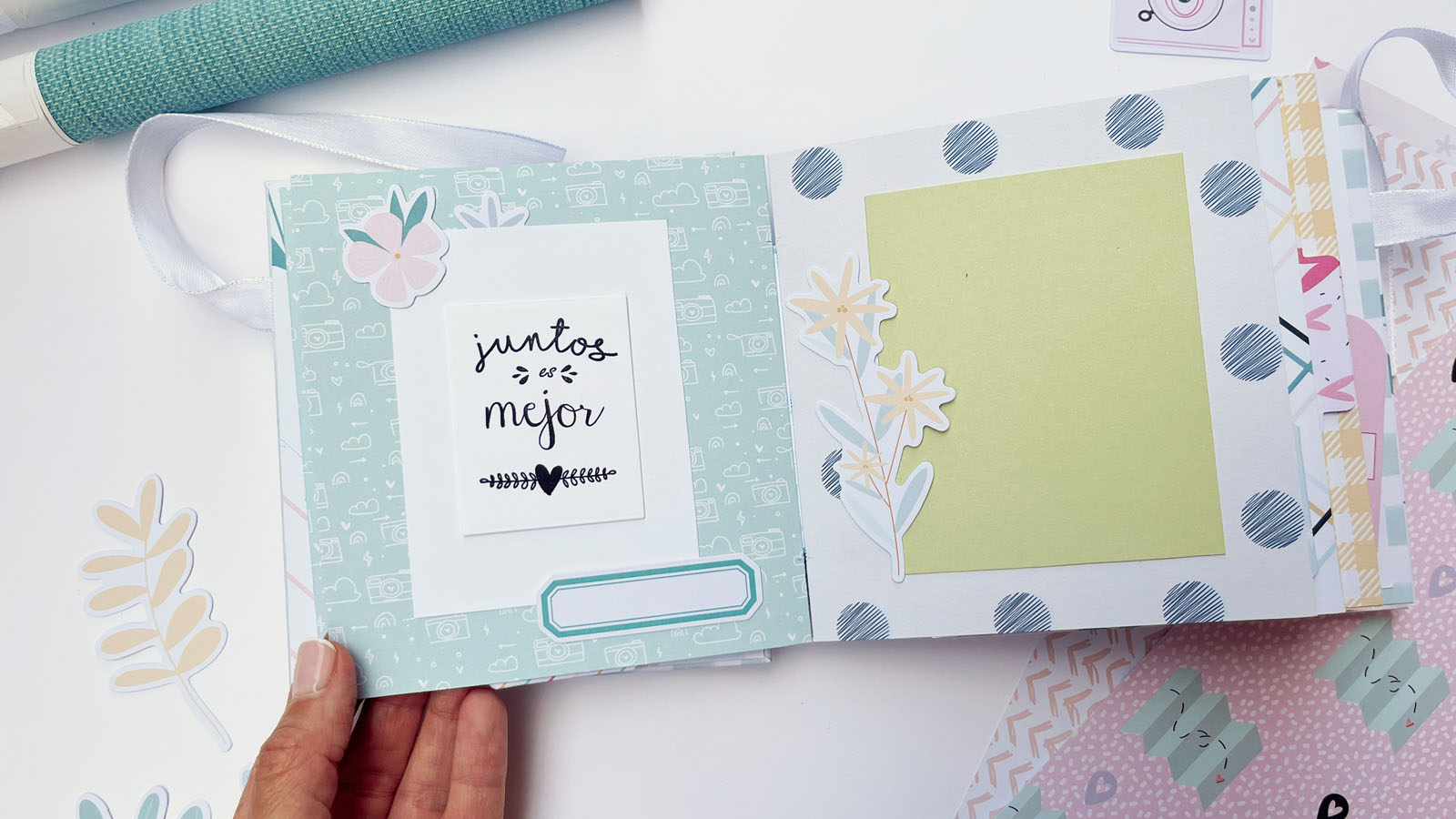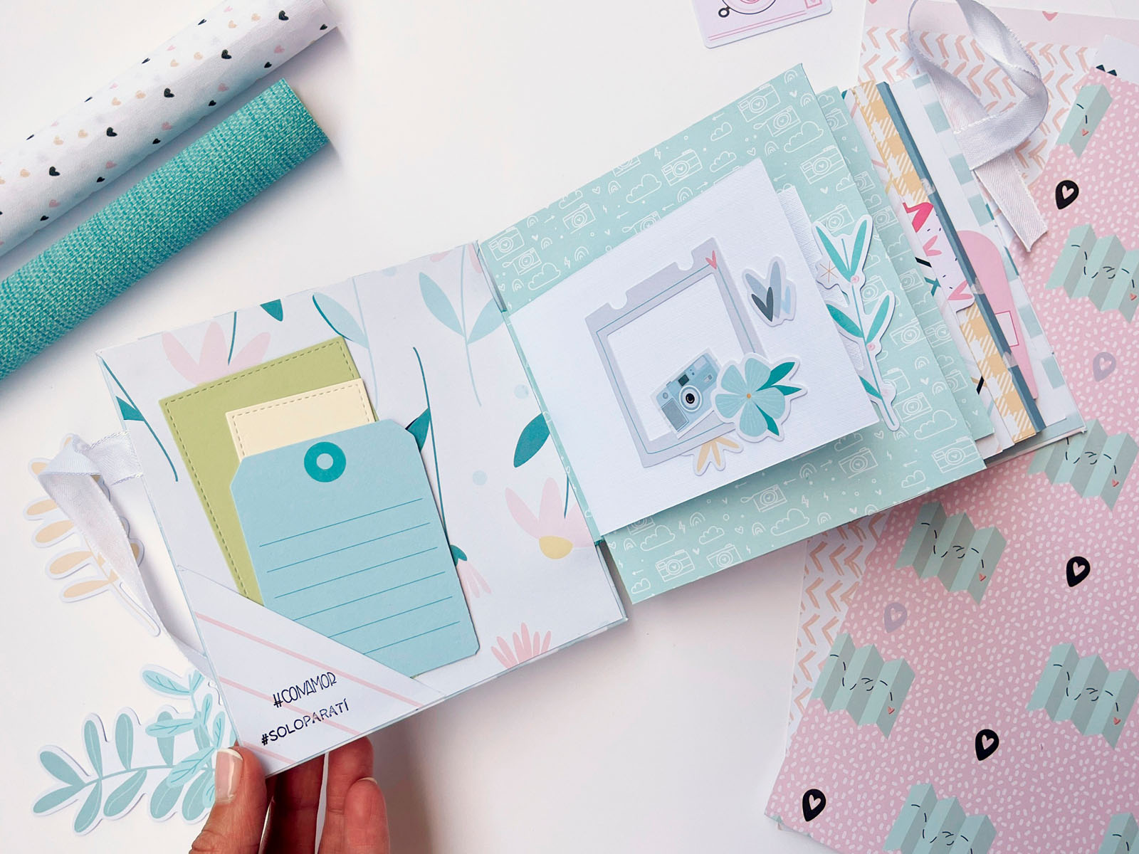 Es un álbum ideal para conservar recuerdos especiales, ya que no es una estructura difícil y queda muy elegante. En mi caso lo he llenado de recuerdos y fotos juntas, pero esa parte la guardo para mí, para nosotras… Lo que sí os aseguro es que, una vez lleno de recuerdos, ¡se convierte en un regalo aún más especial!