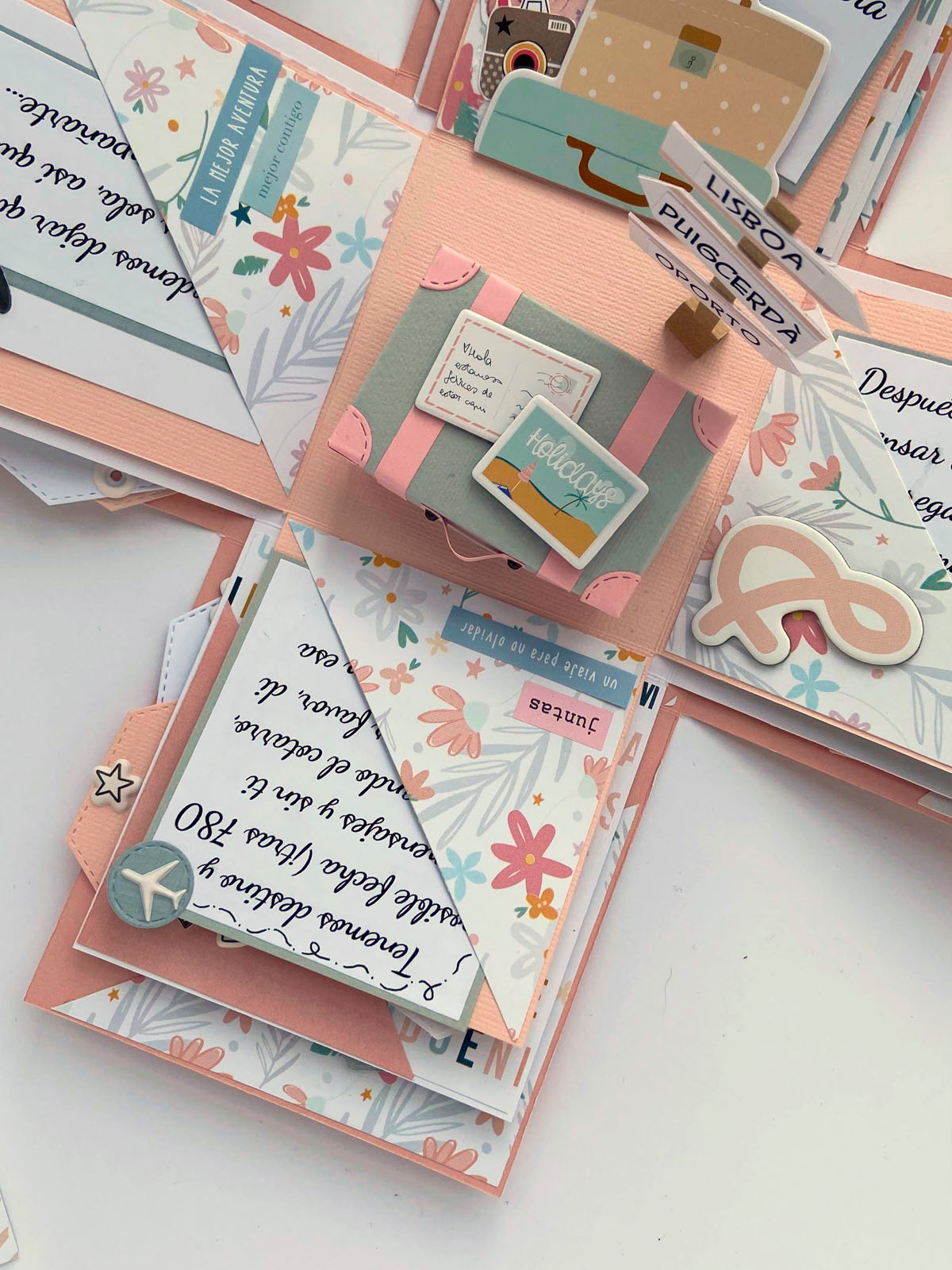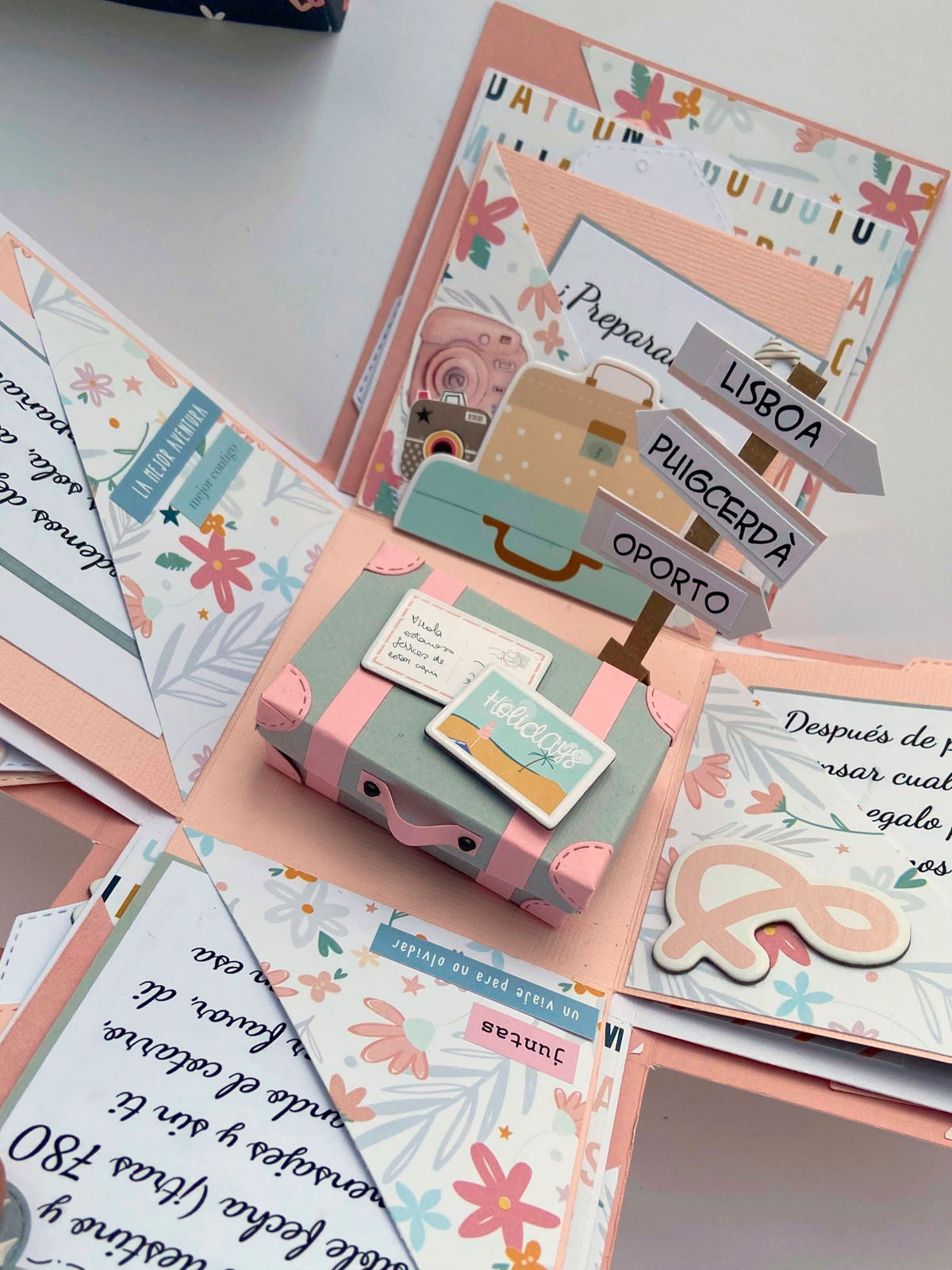 Hoy os enseño una caja explosiva que he preparado como regalo de cumpleaños para una amiga muy especial. Pero en realidad el regalo no es la caja, sino la sorpresa que esconde dentro… porque al final, muchas veces los mejores regalos no son cosas materiales, sino los momentos y experiencias que compartimos. En este caso, el regalo era un viaje juntas, así que era algo especial para todas!