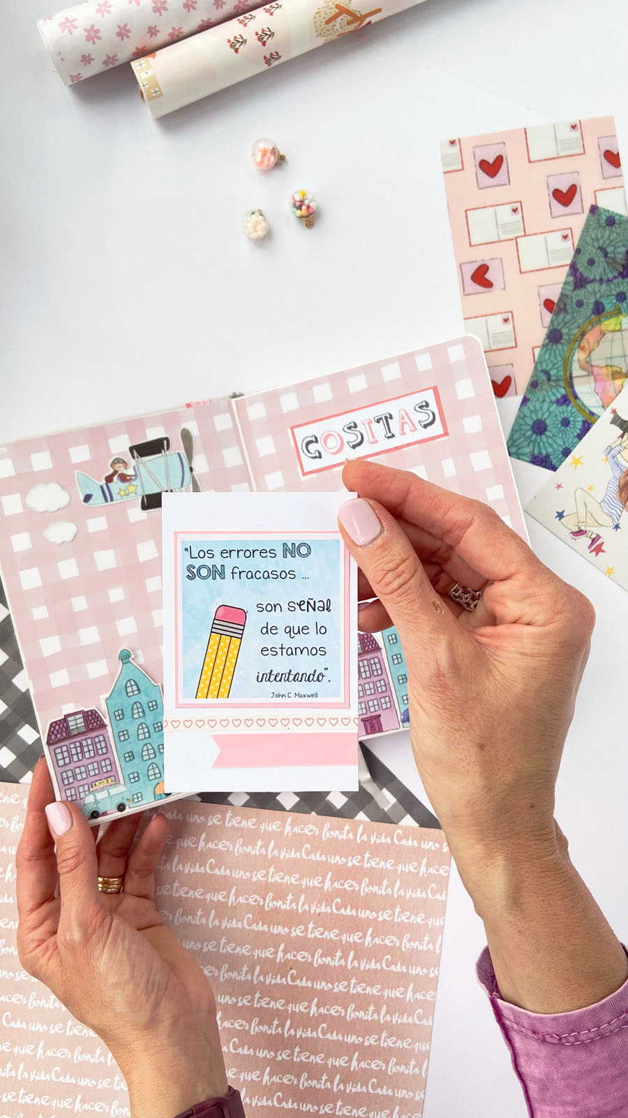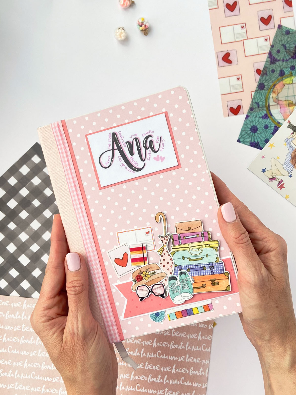 Hay encargos que se disfrutan muchísimo… y esta libreta es uno de ellos 💖 Es un regalito para una nena llamada Ana, y la verdad es que la he hecho con mucho cariño, porque apra decorarla he utilizado colecciones de My Sweet Valentine. Piccolina brava que fue la primera de la marca y Culo inquieto, la segunda. Colecciones que a mí me siguen encantando como el primer día… tienen algo especial… además viví una época muy chula siendo parte del equipo de diseño de My Sweet y conocí amigas que a día de hoy seguimos manteniendo el contacto✨