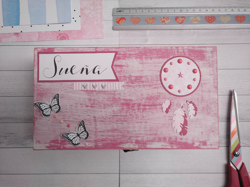 ¡¡Holaaaa!! Esto es un no parar 🙂 Aquí vengo con otra entradita… una caja decorada con chalk paint de la marca Amelie Orita y detallitos de la colección de Sweet Möma a ver si os gusta!!