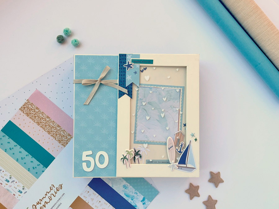 Buenas tardes de domingo! Por aquí os traigo un libro de firmas para un 50 cumpleaños hecho con restos de colecciones de Dunaon en tonos azules. Un libro muy sencillito encuadernado con anillas wi-ro. La portada blanca con puntitos azules, con un marco polaroid troquelado para poner una foto y decorado con algunos diecuts ySigue leyendo «Viviendo al máximo»