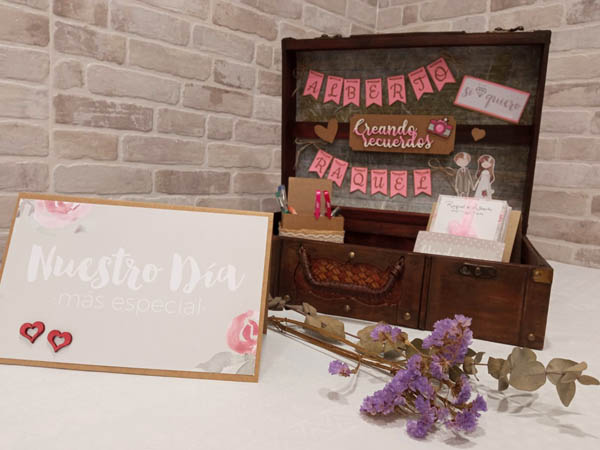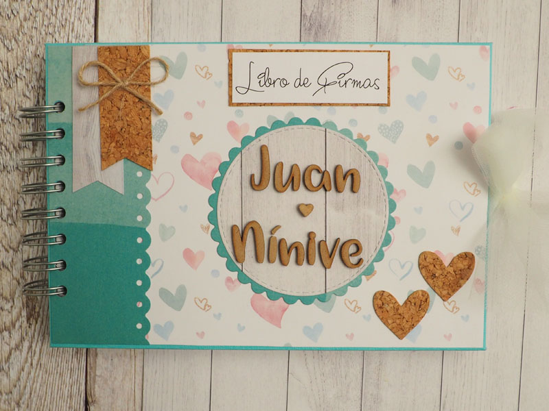 Tengo una amiga que siempre me hace encargos para regalar en momentos especiales… y suele darme ideas de lo que quiere, aunque a veces no le hago demasiado caso, jeje… Esta vez su encargo era un libro de firmas de boda para su hermano, pero un libro de firmas muy muy especial 🙂